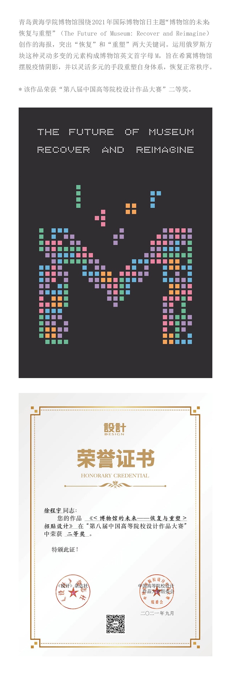 获奖 | 青岛黄海学院博物馆《博物馆的未来:恢复与重塑(The Future of Museum: Recover and Reimagine)》海报荣获“第八届中国高等院校设计作品大赛”二等奖