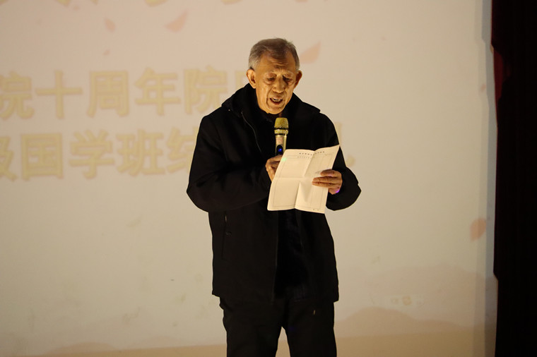 伴随着名誉院长于善勤的发言,2019级国学班结业典礼把晚会带入高潮。于善勤回顾了国学院十年发展历程,表示乘着党的二十大东风,以院庆为契机,不忘初心,不负使命,继续续写国学院发展新篇章,再创辉煌。随后,国学院全体教师为2019级国学院全体毕业生颁发国学院结业证书,为2019级国学班“优秀班干部”“优秀学子”颁发荣誉证书。