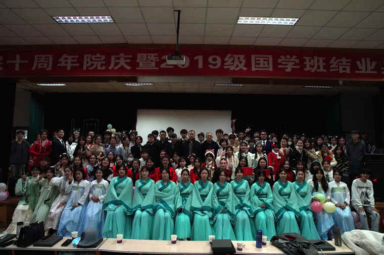 十年风雨同舟,十年春华秋实,十年感恩奋进,十年一路同行。2022年11月17日晚,青岛黄海学院国学院建院十周年晚会暨2019级国学班结业典礼在知明楼大礼堂隆重举行。青岛黄海学院国学院院长于善懃、副院长张维霖以及国学院全体教师参加了此次庆典活动。晚会通过青岛黄海学院官方抖音平台进行了全程直播。并收到了各地专家学者及校友发来的祝福视频。