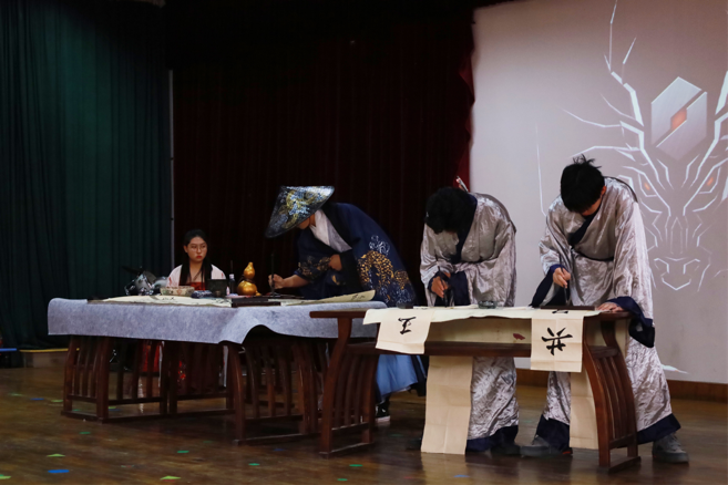 友好交流之余,为了表示对滨海学院社团的欢迎,我校4个社团现场演出了精彩的节目,书法展示、古典乐器演奏、传统舞蹈表演等,演出期间掌声雷动,欢呼声不断,滨海社团表示太精彩了,非常感动。