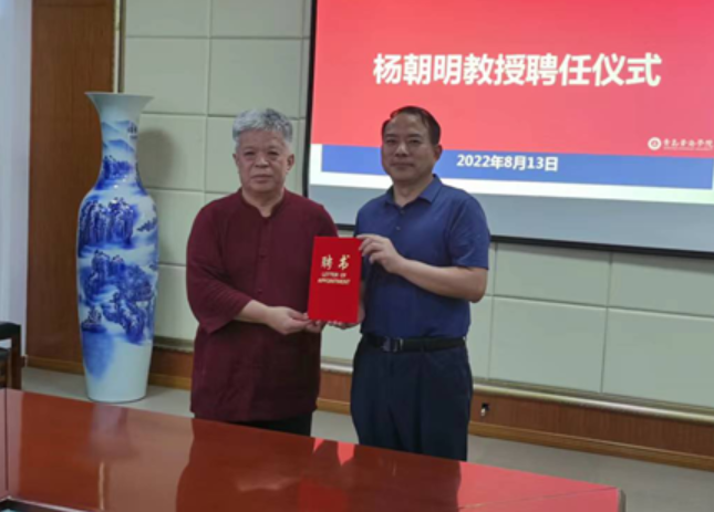 8月13日下午,学校举行杨朝明教授聘任仪式,全国政协委员、中国孔子研究院原院长杨朝明教授受聘青岛黄海学院特聘教授,副校长梁忠环为其颁发了聘书。杨朝明教授就国学教育、优秀传统文化教育、校园文化建设等工作进行了指导。杨朝明,历史学博士、全国政协委员。任国际儒学联合会副理事长、中华孔子学会副会长、中国哲学史学会常务理事等。历任《齐鲁学刊》编辑、曲阜师范大学孔子研究所所长、孔子文化学院院长、历史文化学院院长、尼山世界儒学中心副主任、孔子研究院院长。
