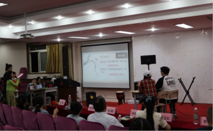 比赛开始之前,开场节目由各类中国乐器演奏的《霍元甲》调动起大家激动的心情,迎来激烈的决赛!经过扣人心弦的一对一两轮淘汰赛,四名同学晋级。中场休息,节目《采菊东篱下》令人陶醉,将比赛推进高潮部分,平复四名同学紧张复杂沉重的心情,而后进入总决赛,经过一番激烈的比试,韩昊原同学获得第一名,郑罗婕同学获得第二名,周彦同学获得第三名。
