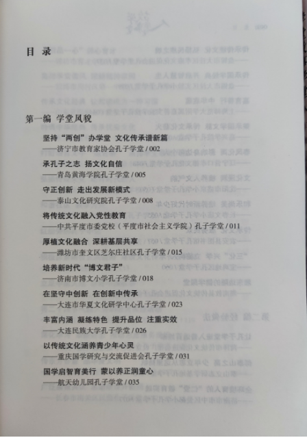 近期,由尼山世界儒学中心(中国孔子基金会秘书处)、中国孔子基金会孔子学堂推进委员会编订的《学堂故事学堂人》出版。其中,青岛黄海学院孔子学堂3篇文章成功入选,它们是:《承孔子之志 扬文化自信》《青岛黄海学院孔子学堂》《以孔子学堂为平台 传承发展中华优秀传统文化》,充分彰显了我校孔子学堂建设与中国优秀传统文化育人成果。