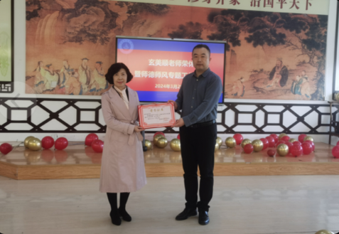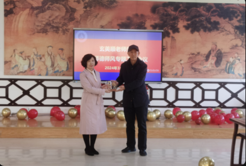 为进一步发扬优良师风,弘扬崇高师德,3月29日,国学院在知诚楼4楼孔子学堂举行玄美顺老师荣休暨师德师风专题工作会。学院老院长于善懃,副院长张维霖,吴晓峰、李雁两位教授,玄美顺老师的爱人赵老师,国学院全体老师及校友、学生代表共同出席见证这一荣誉时刻。