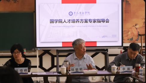 为进一步优化国学院的人才培养方案,提高教育质量,国学院于2024年6月6日上午在知诚楼孔子学堂成功举办国学院特色班级《人才培养方案》专家指导会。本次会议邀请来自学术界、教育界的三位专家学者,包括山东大学儒学高等研究院特聘教授、博士生导师杨朝明,原江苏大学文法学院副院长、青岛黄海学院教授吴晓峰,原齐鲁师范学院文学院院长、青岛黄海学院教授李雁,共同指导国学院的人才培养工作,深入探讨人才培养的新模式、新路径。国学院名誉院长于善懃、副院长张维霖以及全体教师参加了座谈。