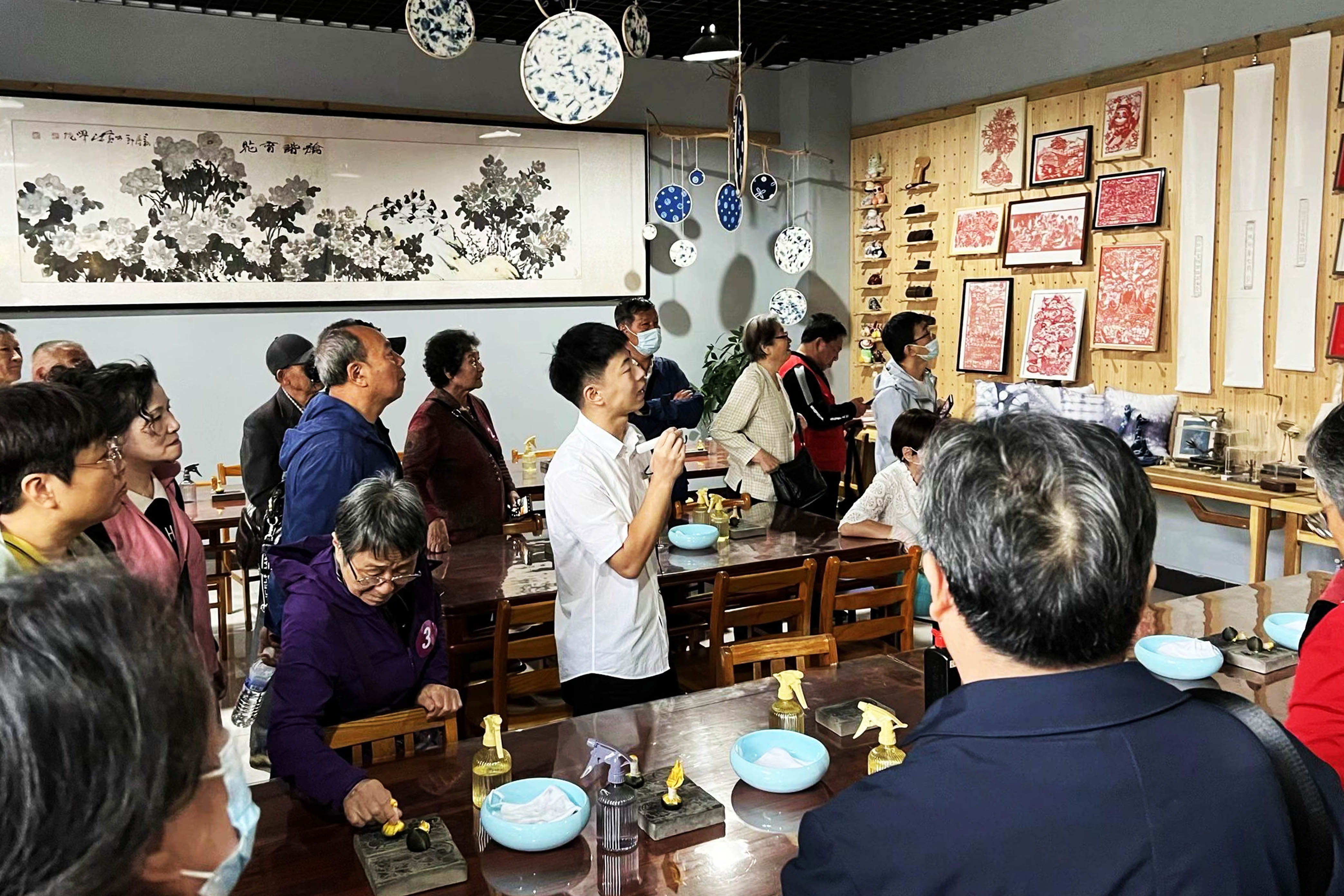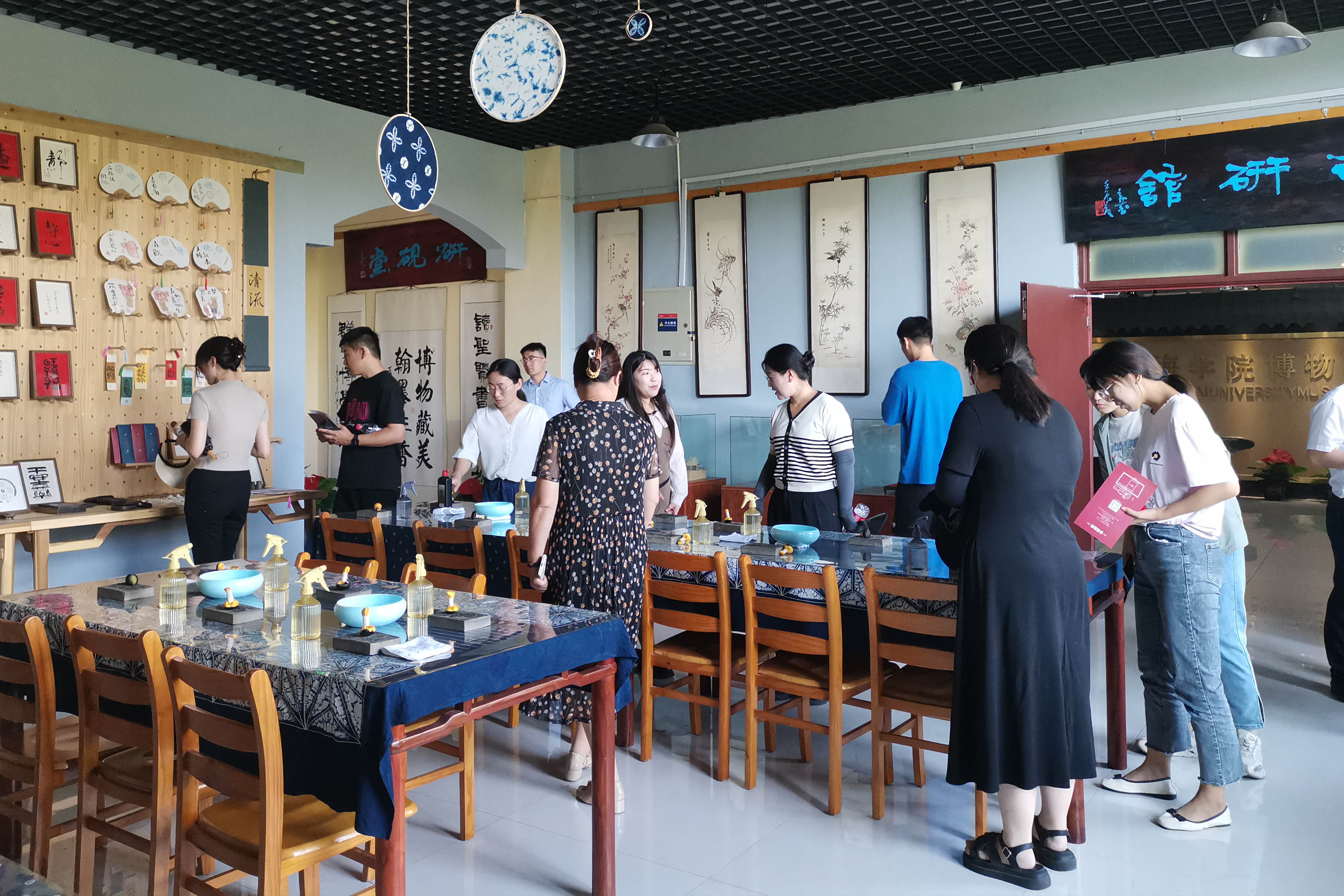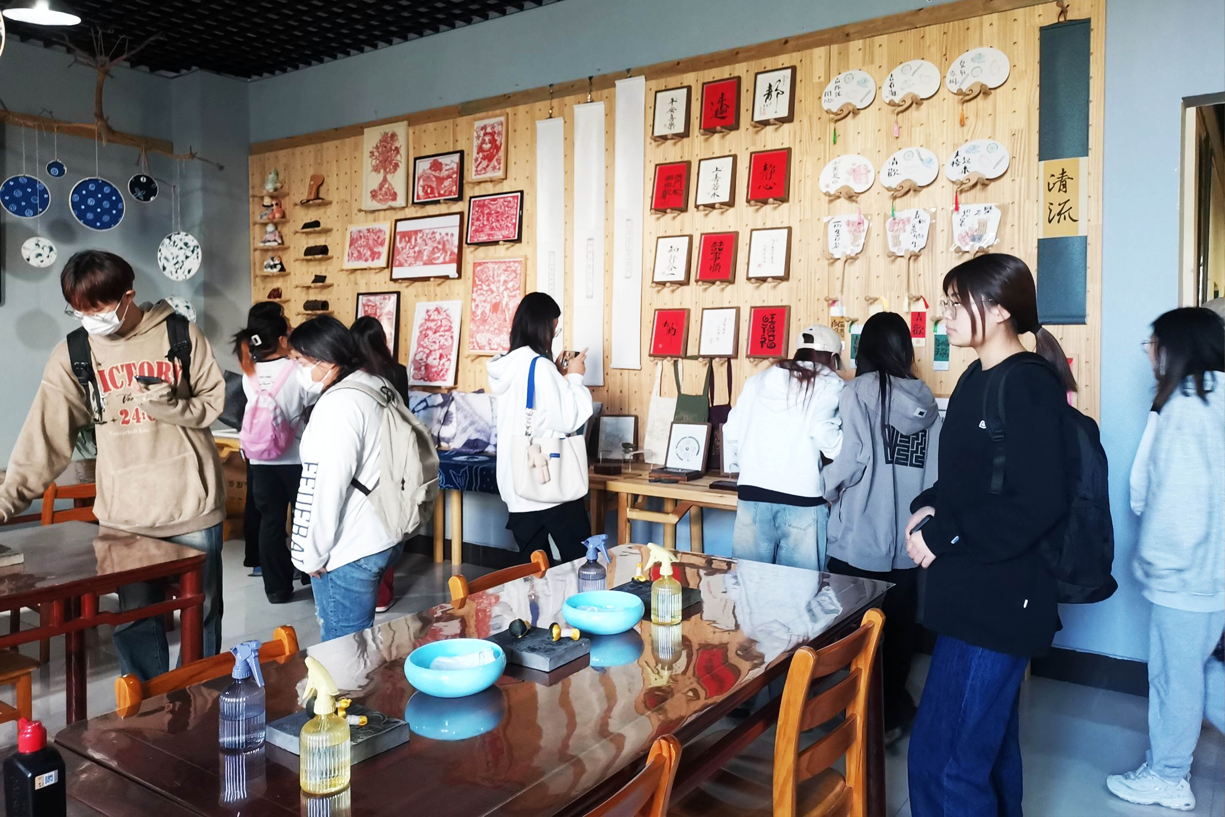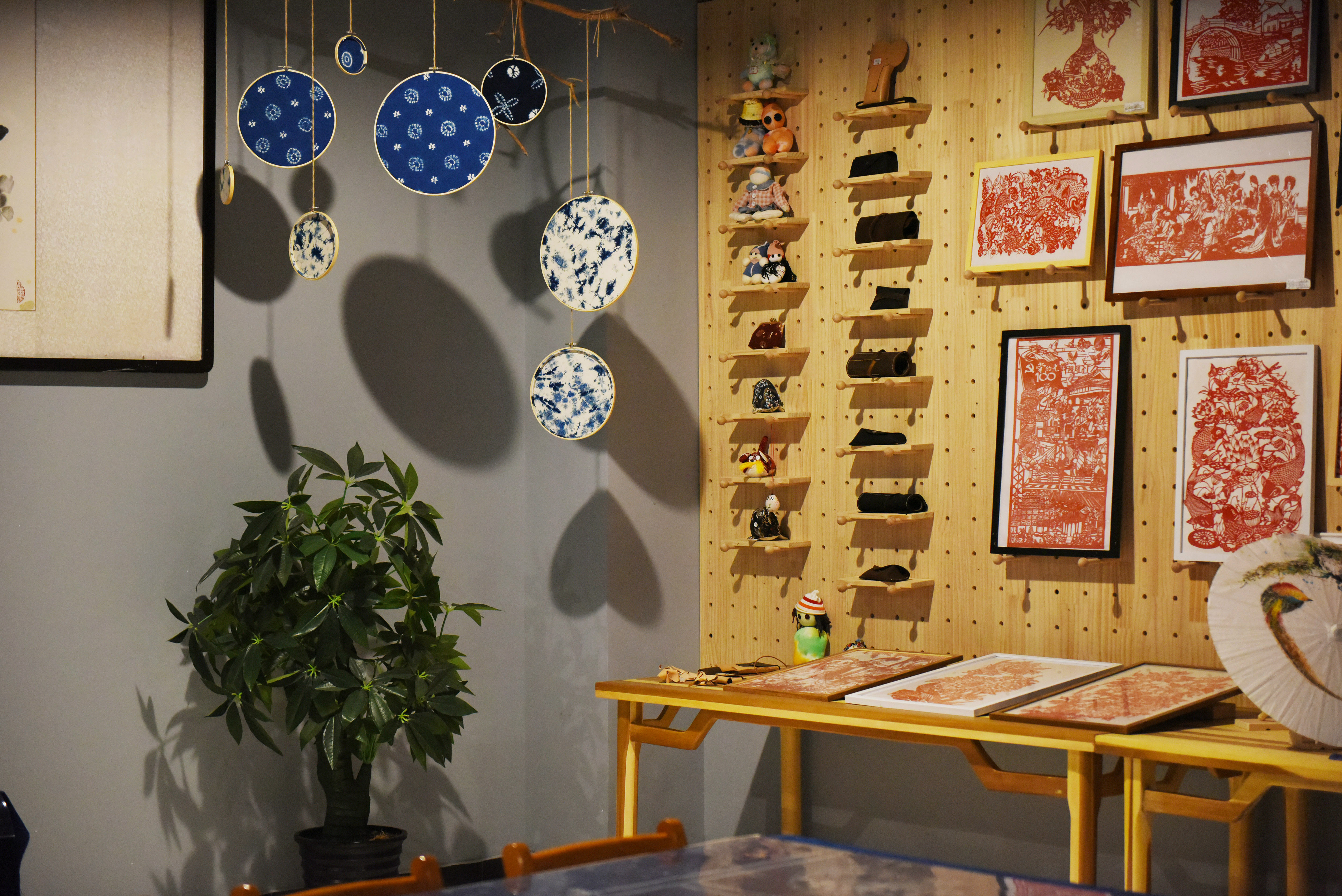 此区域为我馆的原创文创作品展示区域,其中以传拓、手工装裱、书法、篆刻等为主,多为我馆老师及学生出品,其中有扇子、书签、摆台等,每一个作品都是独一无二的。