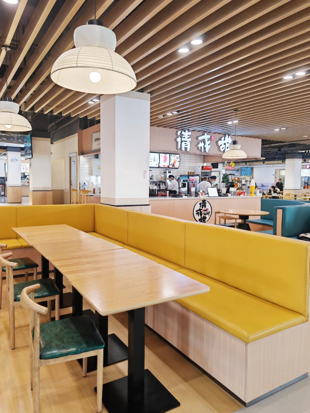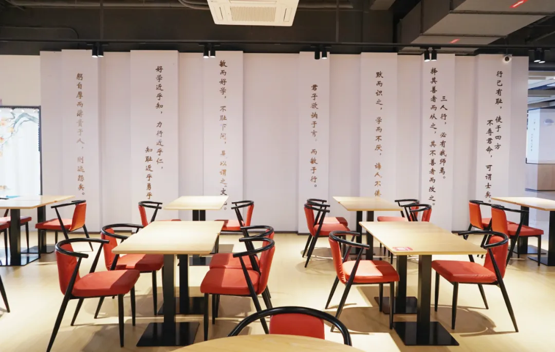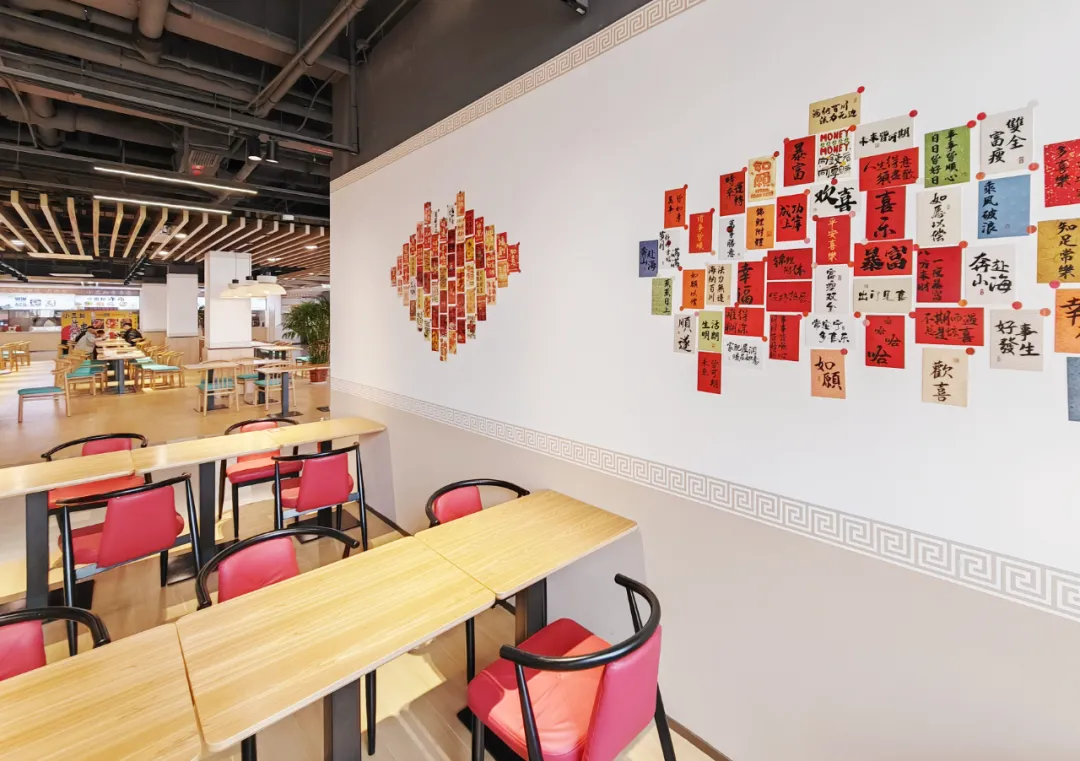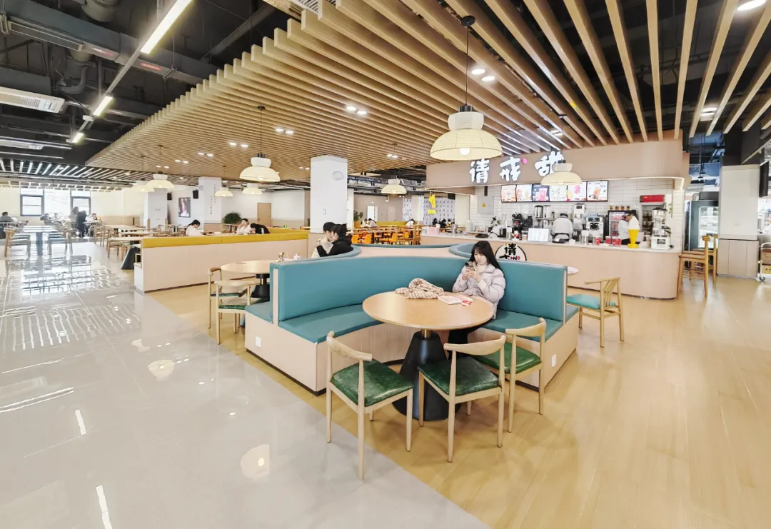 学苑餐厅三层项目,建筑面积约为3005平方米,拥有各类餐饮档口空间27个,可同时容纳682名师生同时使用的多功能就餐空间。作为学校探索新一代餐饮空间打造、助力学校高质量发展的重要工程。在空间形式上,设计方案引入“市集”的概念。“市集”并不仅是形式上的、符号上的市集,更是空间感知上的市集。不同的市集场景存在着不同的交流距离,比如舞台、走廊与档口,在其中人与人的距离是不同的。因交往距离的不同、氛围不同,就会在各自空间衍生出不同的功能属性。高校校园与市集一样,同属于社会集体生活且丰富多彩。把市集的多样带给校园、把校园的活力融入市集,从形式上描绘高校校园生活市集的画卷。