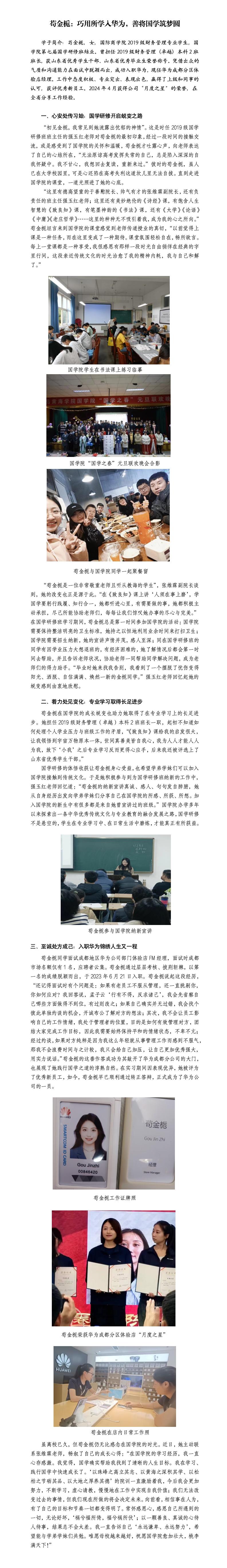 以优秀传统文化培根育人系列报道 | 苟金栀:巧用所学入华为,善将国学筑梦圆
