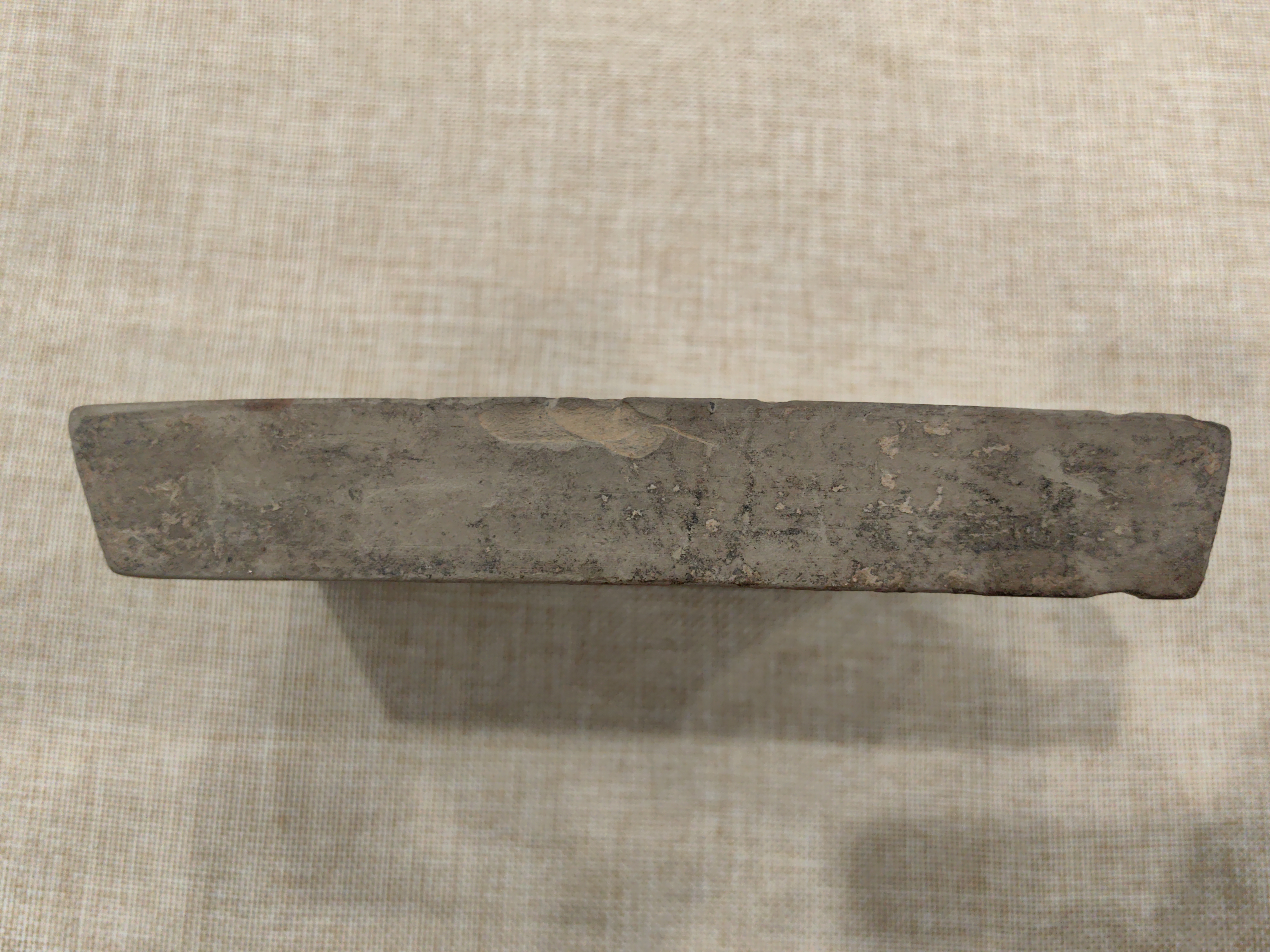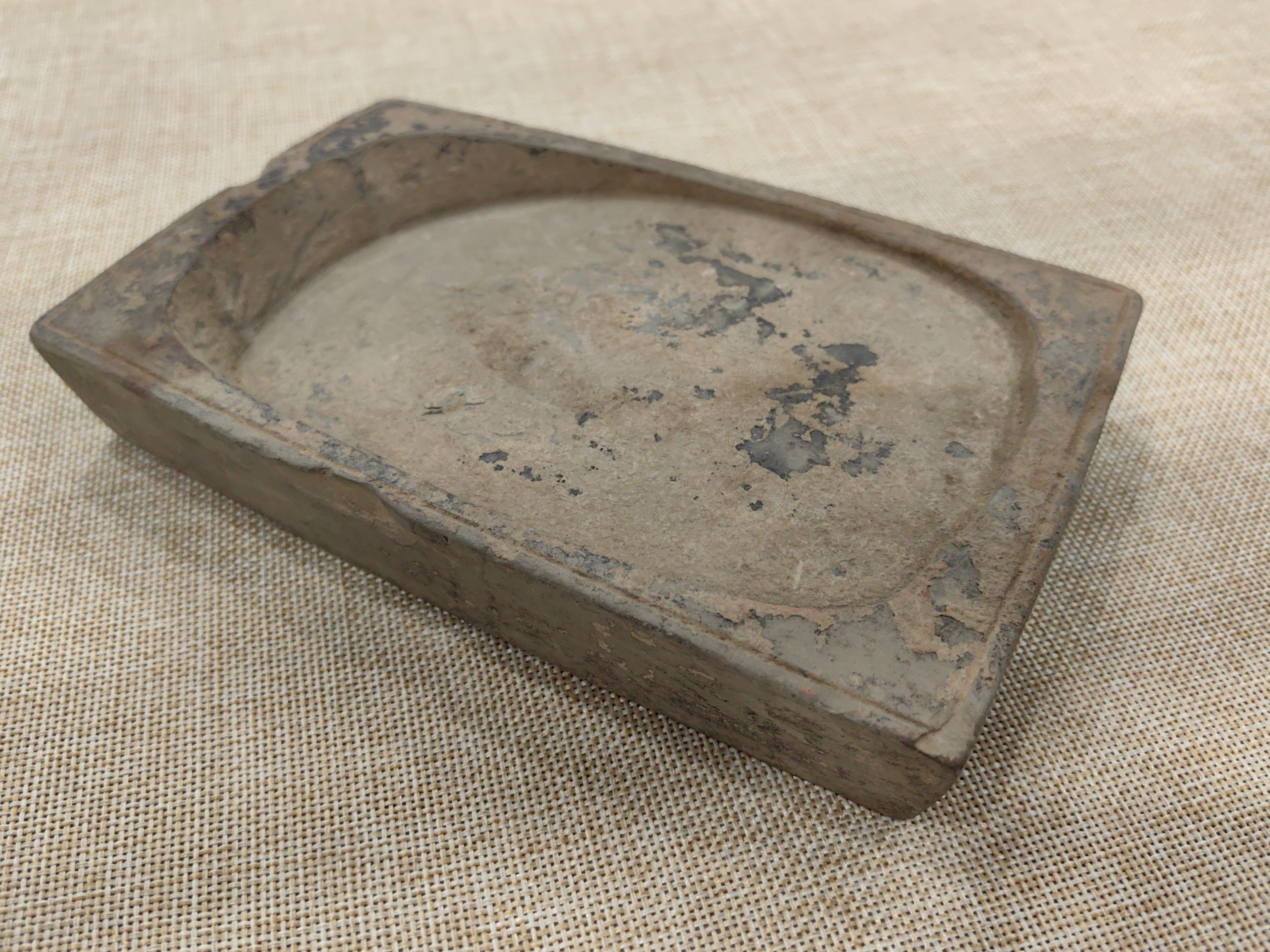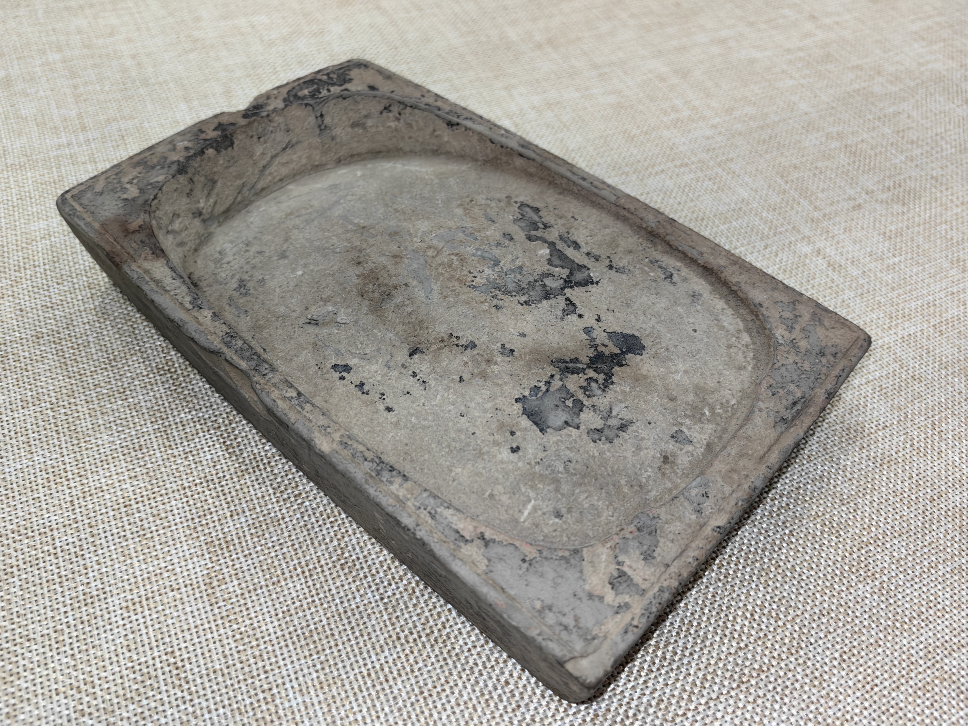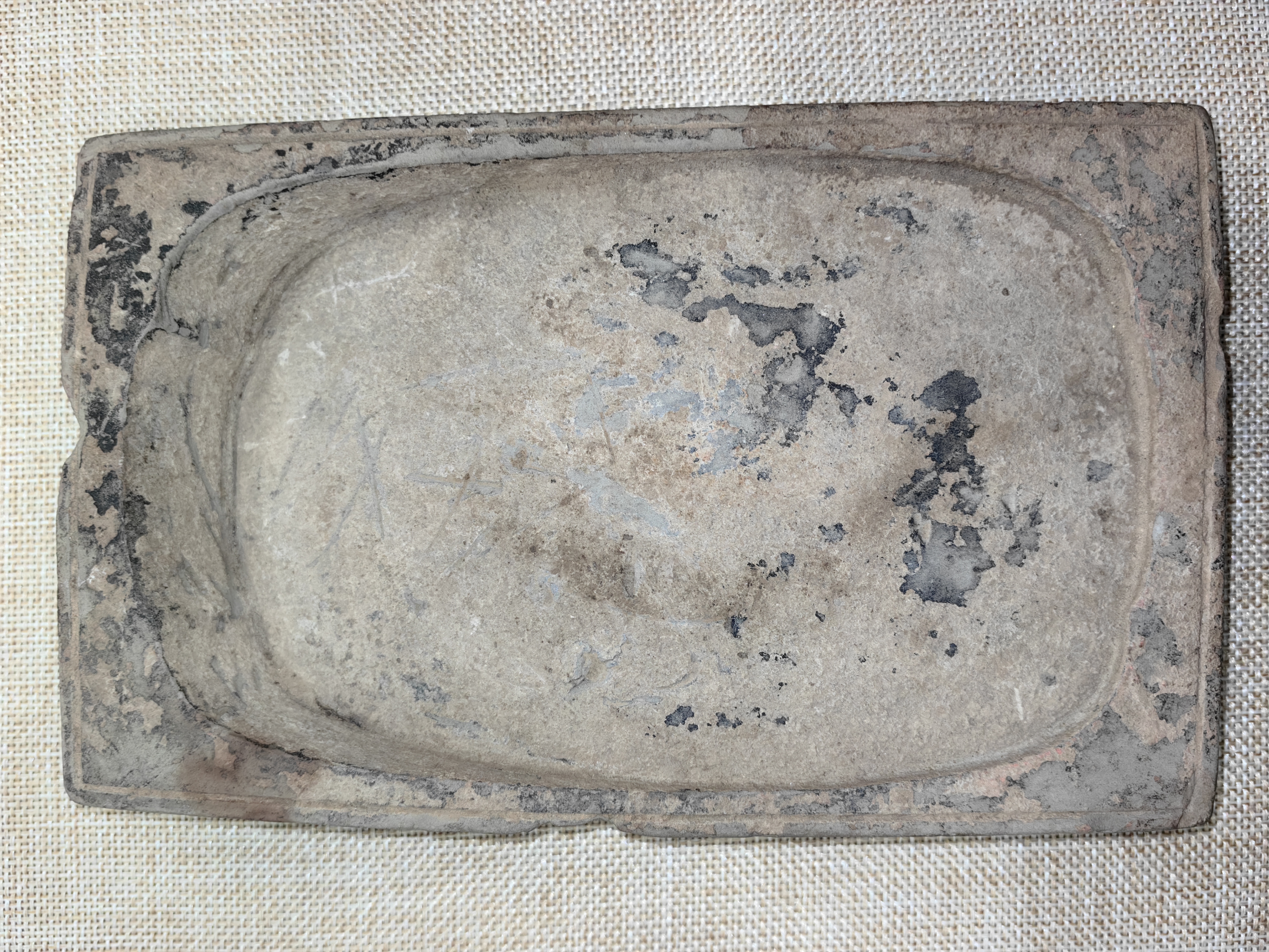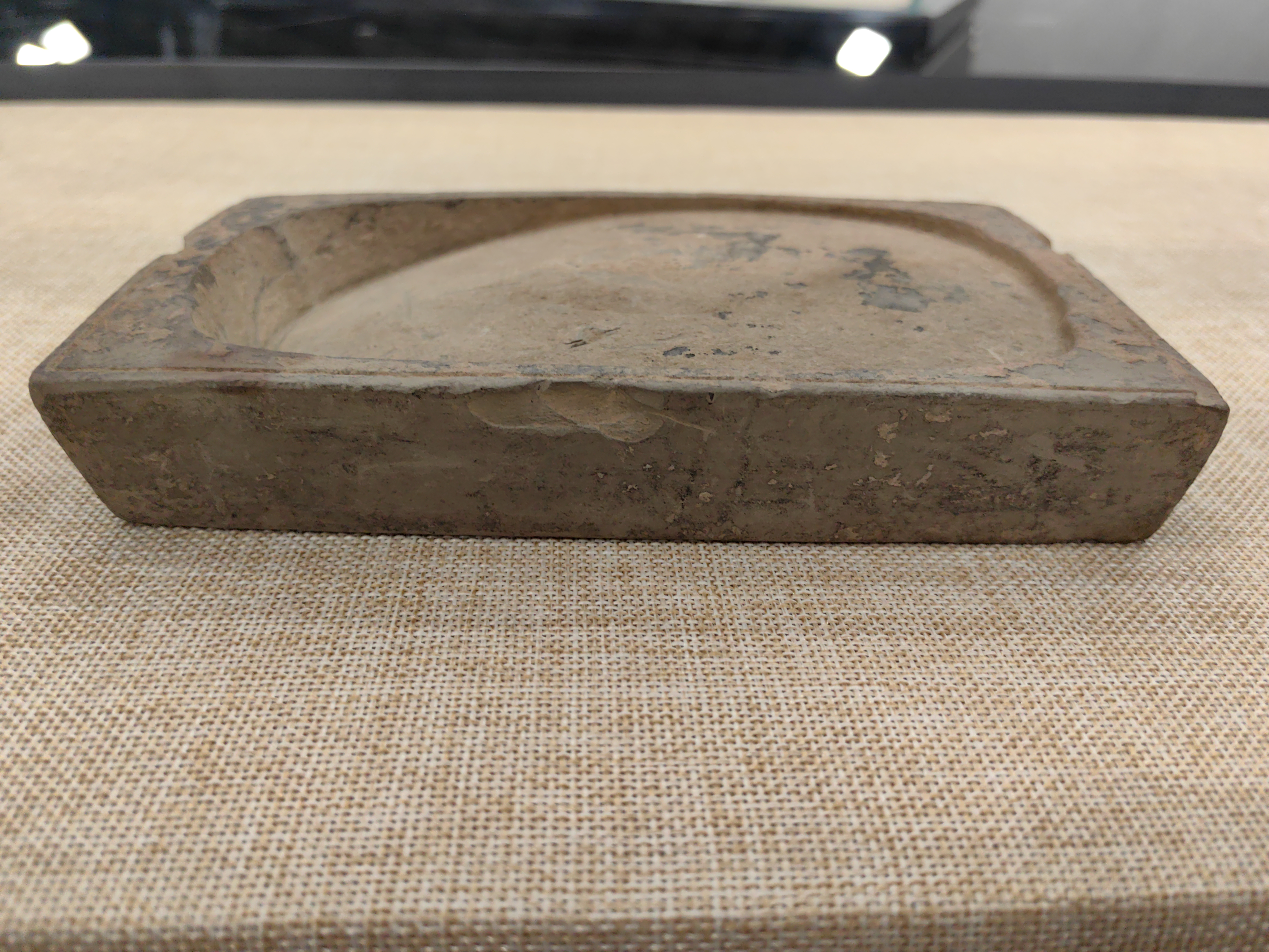 翻至砚背,底部阴刻“三堂”二字,字体清秀规整,笔力刚劲又不失灵动,仿若在诉说着三堂昔日的辉煌。这二字,不仅是对产地或制作工坊的铭记,更是对那段风雅岁月的追忆与致敬。墨池及砚面、砚底,还残留着丝丝墨渍,仿若岁月的痕迹,让人不禁遥想,昔日的文人墨客,是如何在这方砚台前挥毫泼墨,书写下一篇篇锦绣文章,绘制出一幅幅传世佳作。如此一方澄泥砚,集实用、艺术与历史价值于一身,实乃砚中珍品,让人爱不释手。