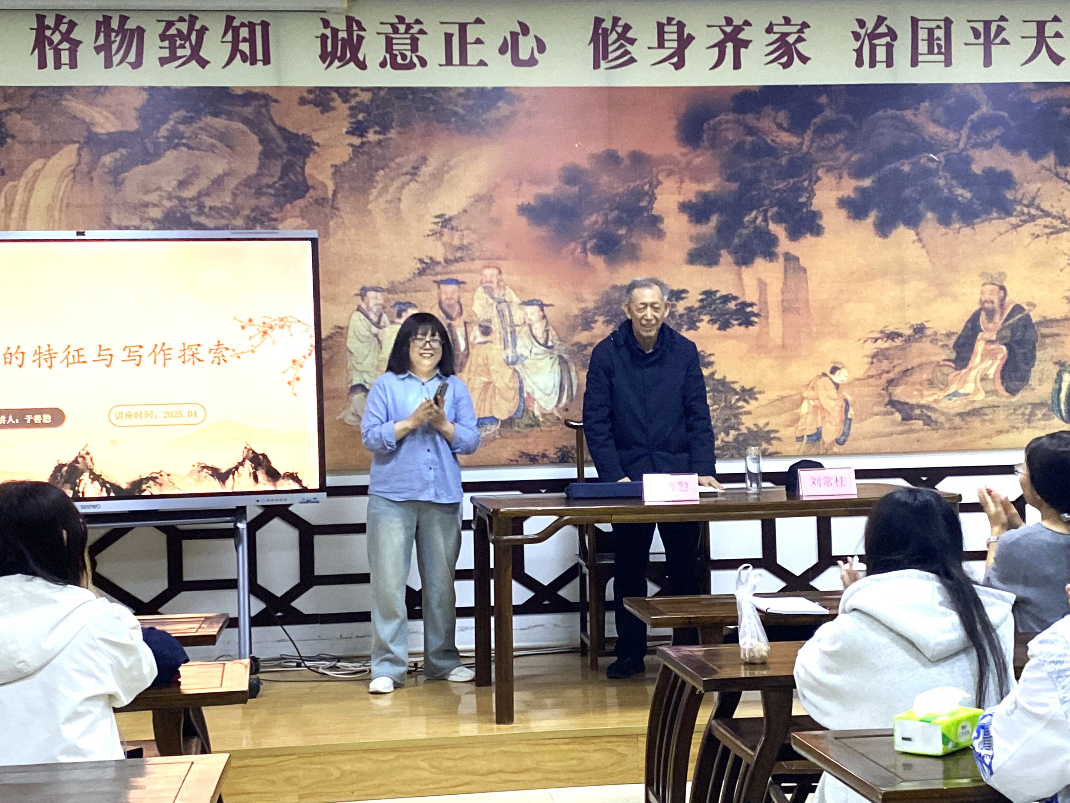 4月10日晚,青岛黄海学院孔子学堂座无虚席,校国学院与琅琊文学社、国风诗社合作举办“新诗的特征与写作探索”主题讲座,特邀国学院名誉院长、知名诗人、学者于善懃教授主讲。琅琊文学社指导教师刘常桂主持活动,国风诗社指导教师李昕昕、国学院特色班级及琅琊文学社、国风诗社的师生代表济济一堂。