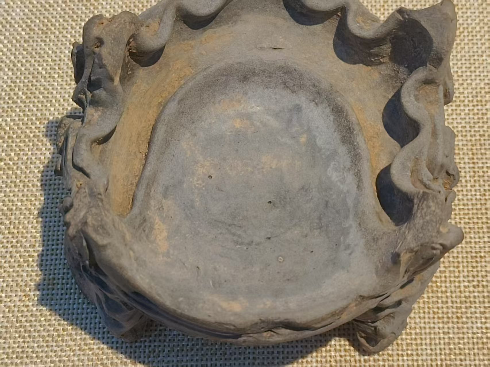 当你站在展柜前,第一眼看到唐代五峰澄泥砚时,定会被它独特的造型所吸引。五座山峰拔地而起,虽静默无言,却似有巍峨之势,仿佛五岳真的在这一方小小的砚台上重现。仔细观察,你会发现每一座山峰都形态各异。有的山峰高耸陡峭,直插云霄,恰似西岳华山的险峻;有的山峰圆润厚重,沉稳大气,宛如东岳泰山的雄浑;还有的山峰连绵起伏,错落有致,好似南岳衡山的秀丽。它们相互呼应,环绕着砚堂,构成了一幅和谐而又壮观的画面。这五峰不仅仅是简单的装饰,它们象征着五岳,即东岳泰山、西岳华山、南岳衡山、北岳恒山和中岳嵩山 。五岳在中国文化中有着举足轻重的地位,它们代表着稳重、崇高与永恒。将五岳的元素融入砚台之中,不仅赋予了五峰砚深厚的文化内涵,也体现了古人对大自然的敬畏和对美好生活的向往。 当文人墨客们在这方砚台上研磨挥毫时,心中或许也会涌起对山川的热爱和对人生的感悟。