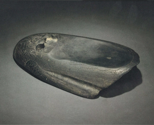 这款明代鱼化飞龙眉纹歙砚,其材质歙石,可是大有来头。歙石源于今安徽南部的古歙州,故而得名,主要分布在安徽、浙江、江西三省交界处的歙县、休宁、黟县、祁门、婺源等县境内 。它石质细密、细腻、坚韧又温润,用它磨墨,悄无声息,发墨却如油般顺滑,贮墨还久不干涸,实在是制作优质砚台的不二之选。