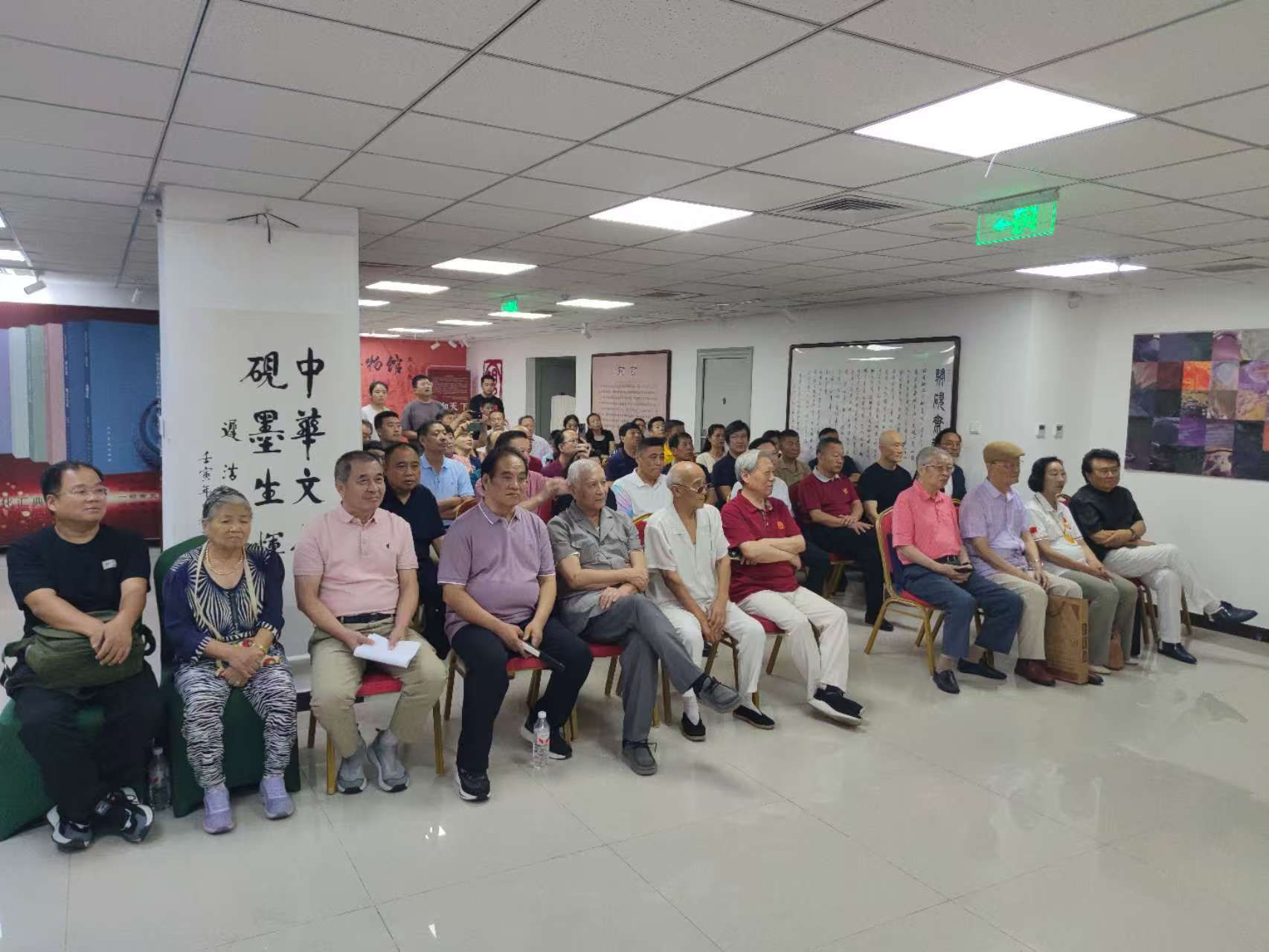 本次展览得到了社会各界的高度关注与鼎力支持。开幕式现场星光熠熠,原国家物资部副部长、全国工商联党组原副书记、副主席、华夏文化促进会书画分会名誉顾问桓玉珊,砚文化研究会创会会长、武警部队原副司令员刘红军中将,原南京工程兵工程学院政委、中国楹联学会顾问、华夏文化促进会书画分会名誉顾问孙之贵将军,海军航空兵原副政委、国防大学兼职教授李春明将军,原驻港部队文工团团长、国家一级编导、华夏文化促进会书画分会名誉顾问姜乃元将军,砚文化研究会会长助理、原武警重庆总队副司令员孙克利,砚文化研究会副会长、文化和旅游部离退休人员服务中心原副主任王炳义,中国美术家协会理事、中国华侨画院院长、华夏文化促进会书画分会顾问张清智,原中央和国家机关书法家协会副主席兼秘书长尹祥君,国家重大项目专家、CIGIS文旅规划研究院创始院长蔺道军,原北京西城文旅局一级调研员、北京文旅协会专家、华夏文化促进会书画分会顾问王顺,华夏文化促进会书画分会顾问李正钢,砚文化研究会副会长金彤,原第二炮兵审计局宋世友大校,原国家公安部刑事技术中心领导、北京湖社画会副秘书长李春来,华夏文化促进会书画分会执行秘书长许兵,国际中国书画家交流促进会副秘书长、中国书法家协会会员吴马,华夏文化促进会书画分会副秘书长、中康瑞臻文化传媒总经理任咏斌,北京市顺义区美术家协会主席魏宗安,白俄罗斯国家文联中国首席代表刘瀚锴,北京湖社画会秘书长、中国电视剧制作产业协会少年工作委员会秘书长张惟,砚文化志愿者卢敏,砚文化志愿者廖振华,丹光碧叶有限公司董事长、江苏省收藏家协会副会长刘燕,中国国家画院美术师萌芳,砚文化研究会秘书长阴巍,北京市顺义区美术家协会秘书长刘凤池,北京砚台文化博物馆馆长于忠文,北京砚台文化博物馆副馆长刘佳娜,华夏文促会书画分会办公室副主任张宗良,华夏文促会书画分会外联部副主任、七宝阁书院院长袁源,华夏文化促进会书画分会外联部副主任常和书,砚文化研究会办公室主任孙德勇,红山画院院长张景峰,北京希福电气安装工程有限公司副总经理张建设,来自山东青岛、高密的嘉宾:青岛黄海学院副校长马延岳,山东高密收藏家协会会长单既建,山东省鲁砚协会非遗传承研究分会会长张慧秀,青岛黄海学院博物馆负责人毛波,展览主人翁:青岛黄海学院教授范立忠,以及主办单位高俐妮、巩玉兆、程宣瑞、刘杰睿,社会各界人士高志华、丁月、 王晋强、王博,还有范立忠先生亲朋好友等近百人出席,一同见证这一重要时刻。
