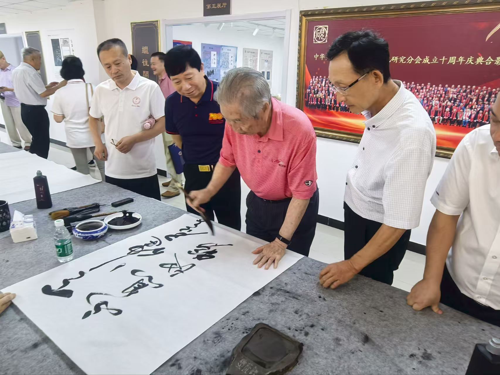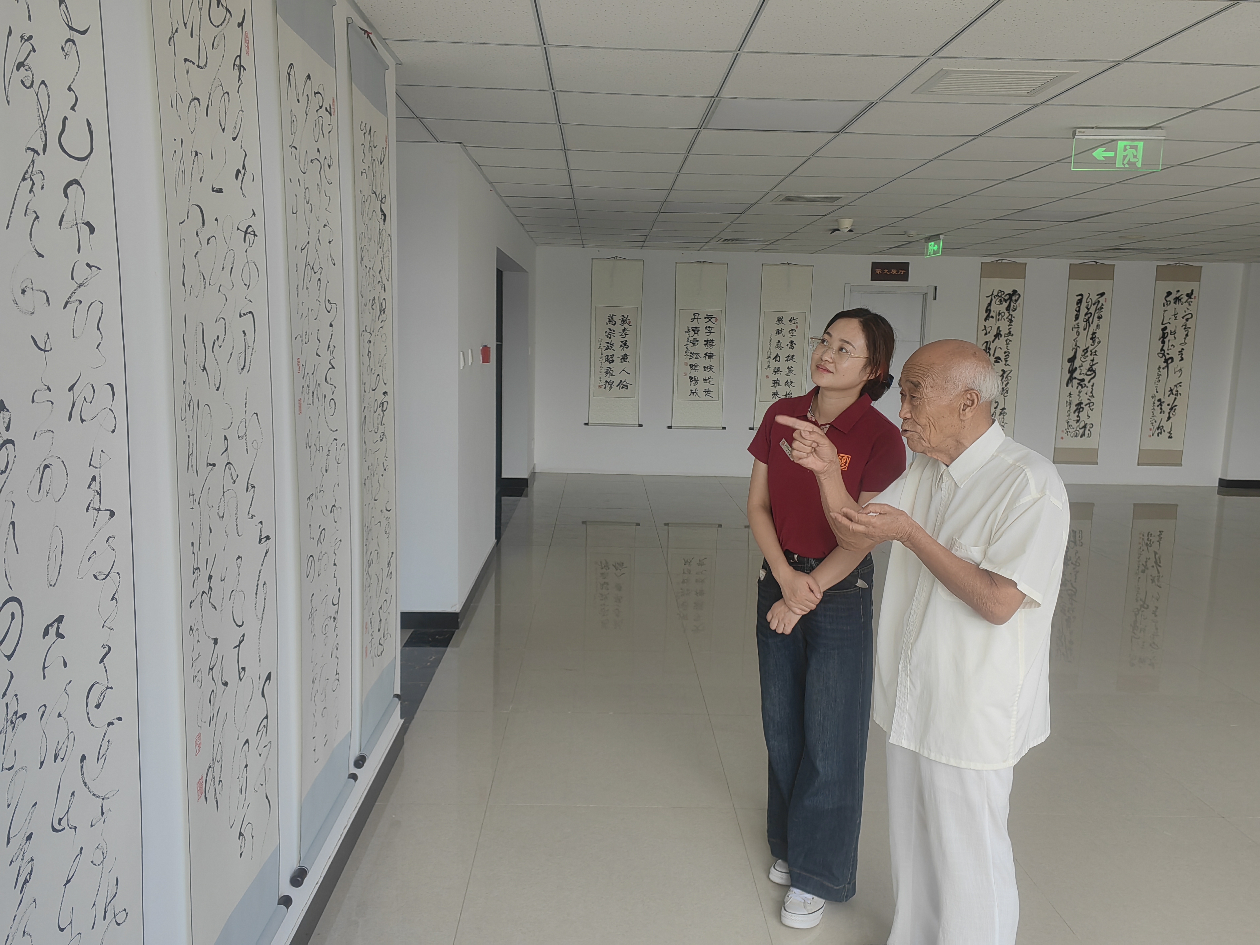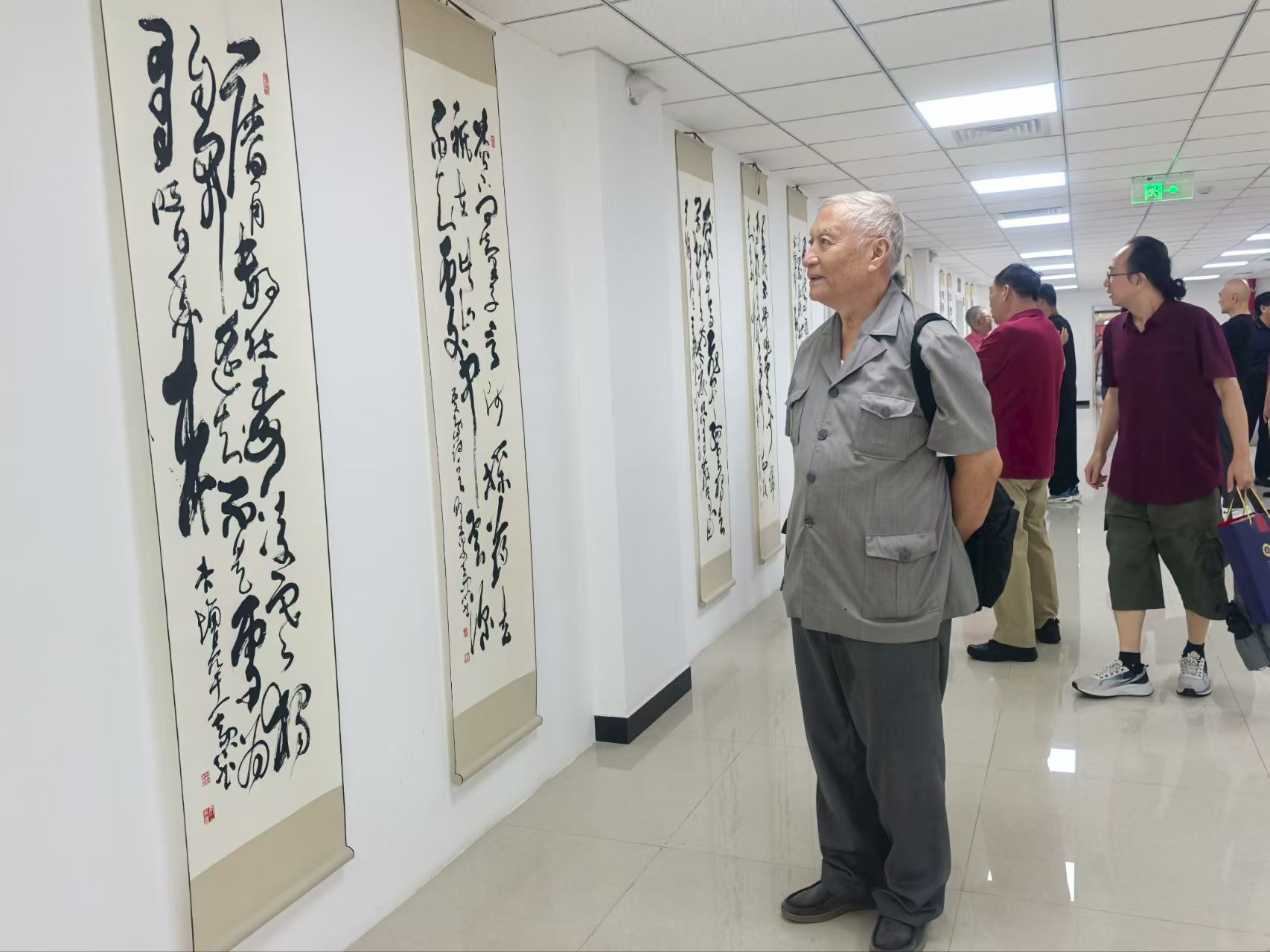开幕式结束后,嘉宾们怀着期待与兴奋的心情,移步展厅观看展览。展厅内,一幅幅书画作品错落有致地悬挂在墙上,吸引着嘉宾们的目光。他们或驻足凝视,或轻声交流,沉浸在艺术的海洋中,感受着范立忠先生作品的独特魅力。在参观过程中,嘉宾们还不时向范立忠先生请教一些关于书画创作的问题。范立忠先生总是耐心地解答,分享自己的创作心得和体。他的话语中充满了对艺术的热爱和对传统文化的敬畏之情,让在场的每一位嘉宾都深受启发。最后,嘉宾门开展了书法交流活动。大家热情高涨,纷纷拿起毛笔,尽情挥洒笔墨,展现自己的书法才艺,现场墨香四溢,气氛热烈。