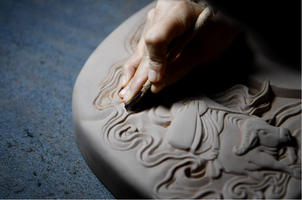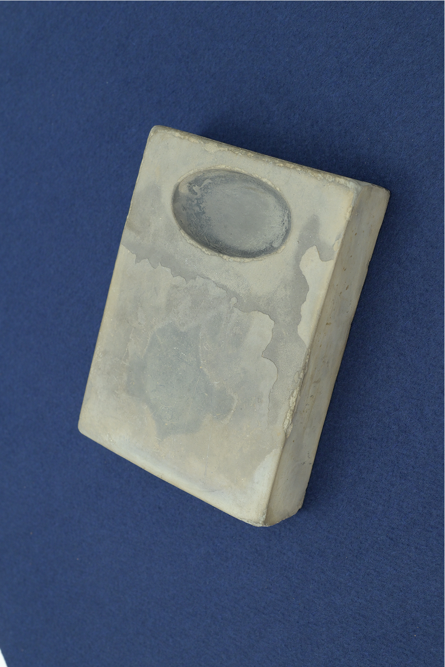 这方砚台采用泥雕的制作工艺。工匠们选取合适的泥料,经过反复的捶打、塑形,将泥料打造成砚台的雏形,然后精心雕琢出砚堂、墨池等部分,最后经过烧制等工序,使泥料变得坚硬耐用。每一道工序都需要工匠们的耐心与细致,泥雕工艺的运用,让这方砚台不仅是实用的文房器具,更具有了艺术的美感,展现出古代工艺的精湛与魅力。
