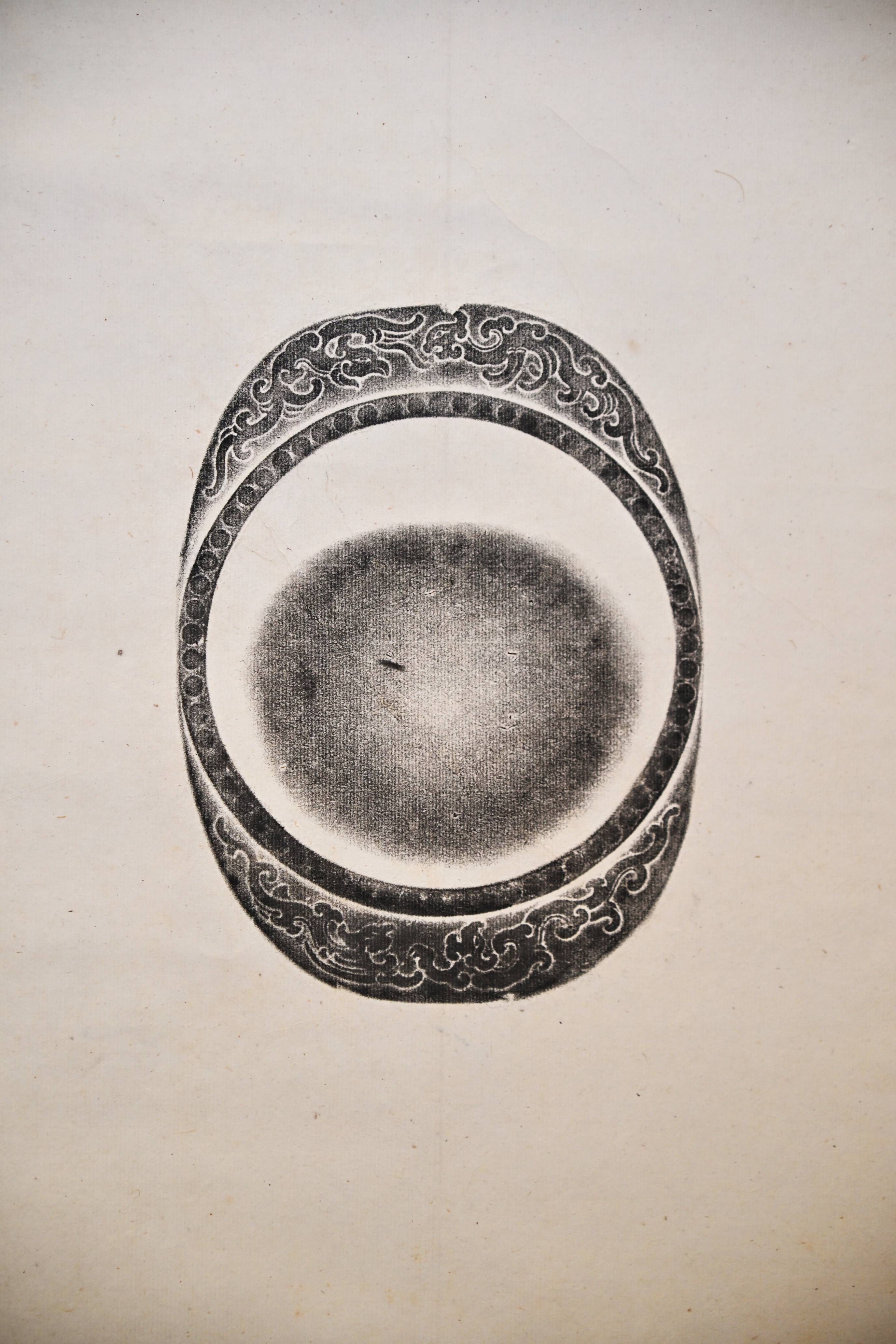 砚堂开阔平整,是为研墨之所,尽显古朴典雅。整体造型圆润规整,砚堂部分开阔平整,便于研磨墨汁。砚缘处饰有精致的纹饰,线条细腻繁复,工艺精湛,既起到了装饰作用,又与砚堂的简洁形成对比,展现出端砚在实用与审美上的完美融合。