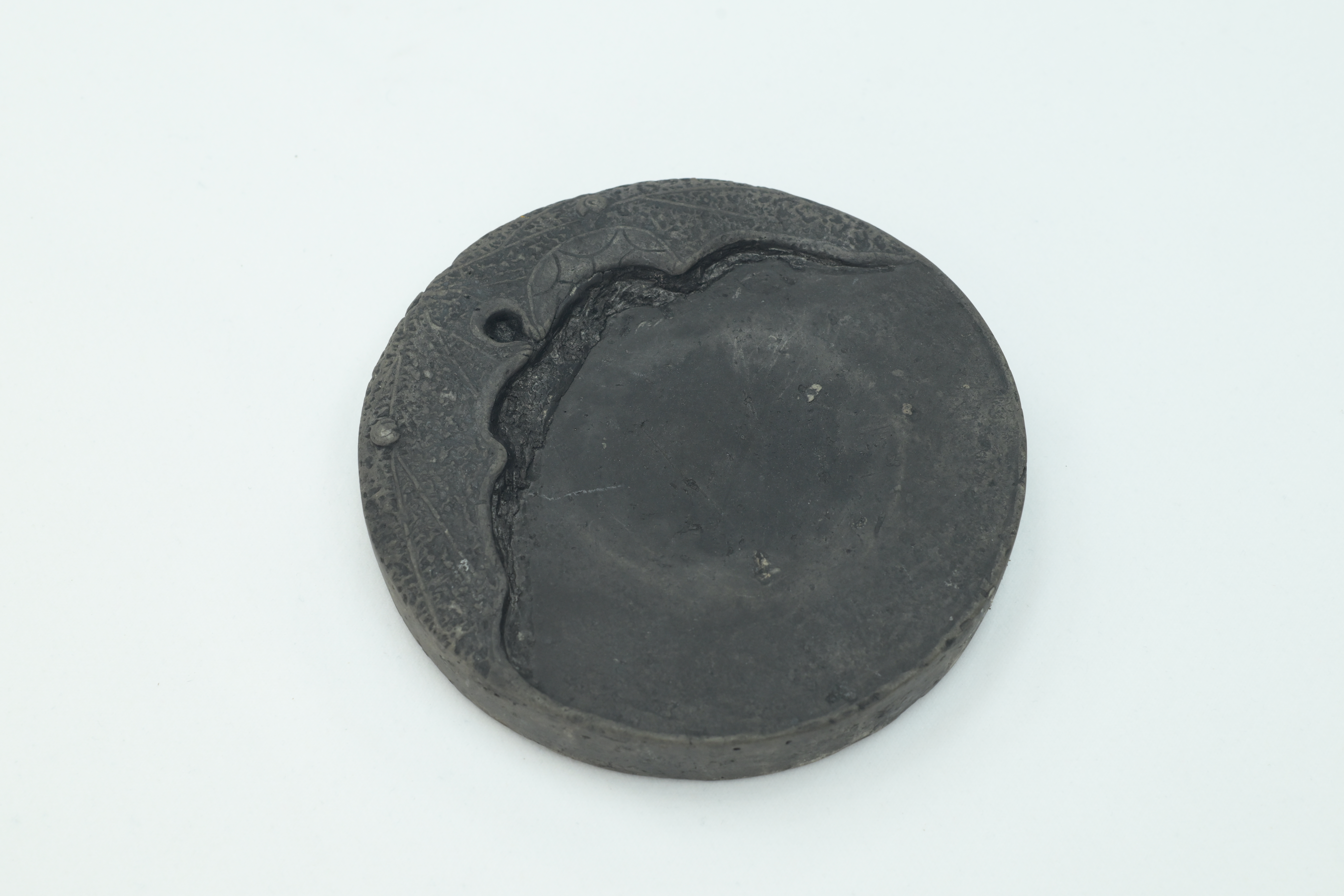 砚台的砚面,雕琢成了荷叶的造型。那起伏的边缘,恰似荷叶在微风中轻轻漾起的波痕,灵动而自然。叶片上的纹理,细腻地勾勒出叶脉的走向,仿佛能让人感受到荷叶的柔韧与生机。一方小小的砚池,巧妙地融入荷叶形态之中,似是荷叶承接着的一滴晨露,为研墨增添了几分诗意与雅致。当墨锭在砚面上缓缓研磨,墨汁顺着荷叶的纹路晕开,仿佛能将人带入荷塘月色的清幽之境,让书写与绘画的过程,也成了一场与自然对话的雅事。