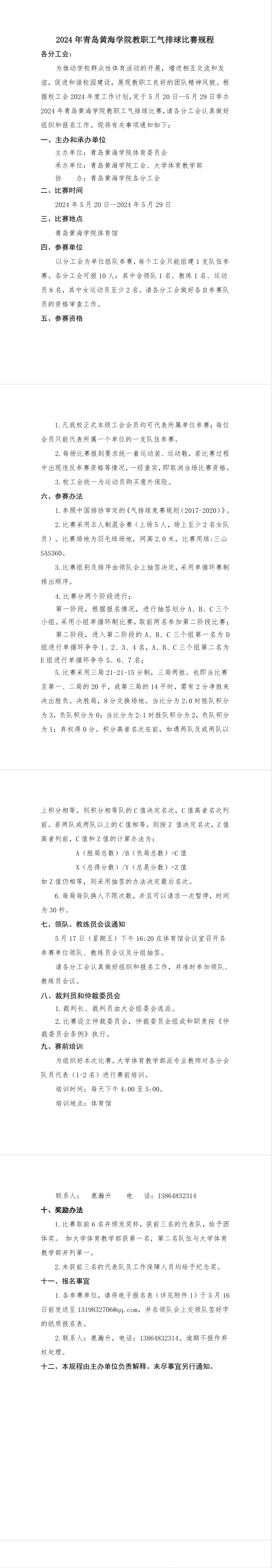 2024年青岛黄海学院教职工气排球比赛规程