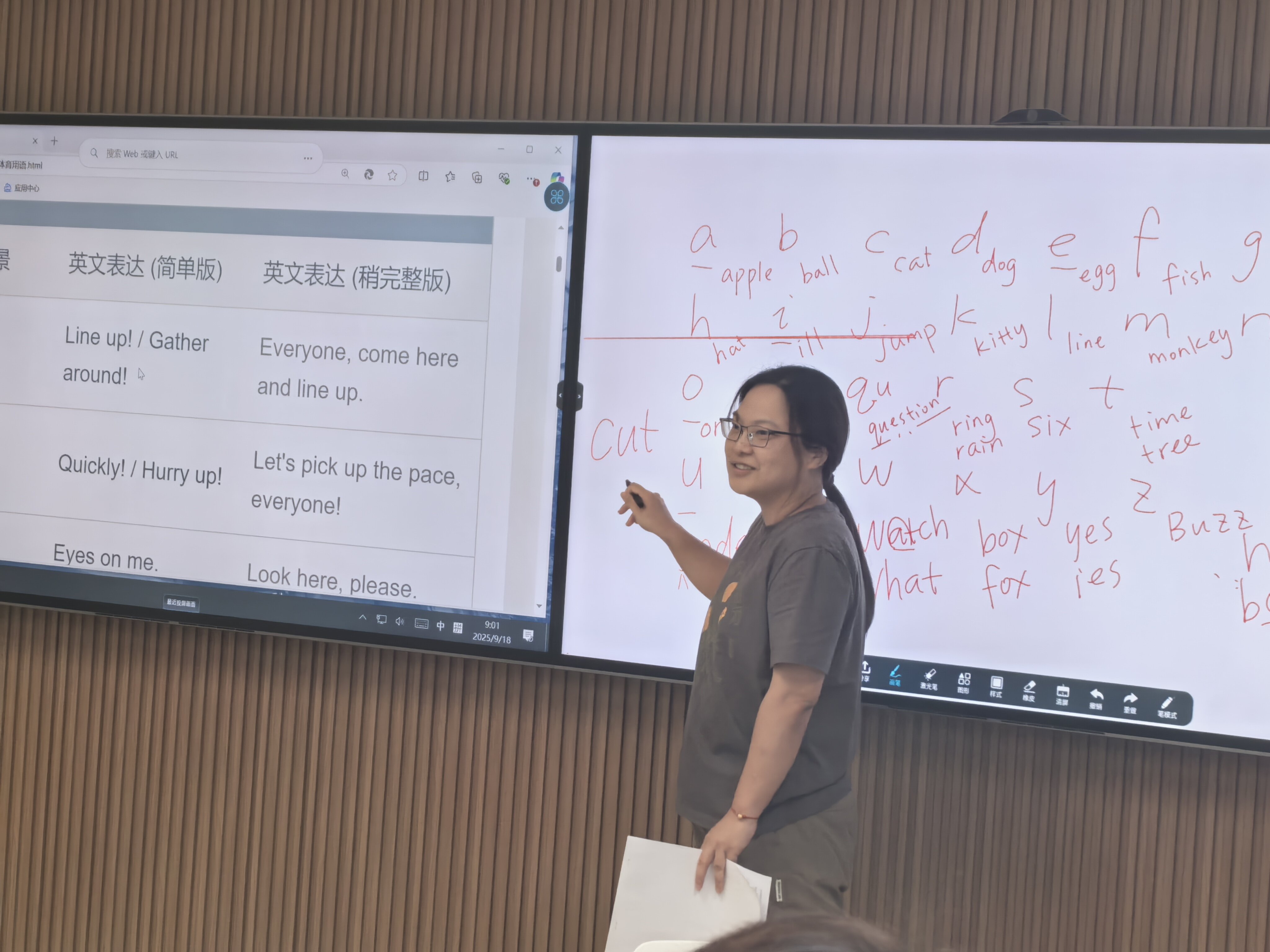 我部开设双语教学的课程项目有篮球、羽毛球、排球、乒乓球、武术、瑜伽。培训中,王式晔由英语自然拼读法讲起,聚焦体育课堂实际需求,以“实用性、精准性”为核心展开讲解。一方面,结合常见体育项目,系统梳理了课堂组织中的关键注意事项,如双语指令的时机把控、跨文化教学中的沟通技巧、安全规范的双语同步传达等,帮助教师规避教学细节中的潜在问题;另一方面,针对“集合(Line up)”“热身(Warm up)”“注意安全(Safety first)”“分组练习(Group practice)”等高频课堂指令,逐句示范标准英语发音,纠正易混淆的语音语调,并通过“教师跟读+情景模拟”的方式,确保每位教师都能准确、流畅地掌握课堂双语指令与教学规范,