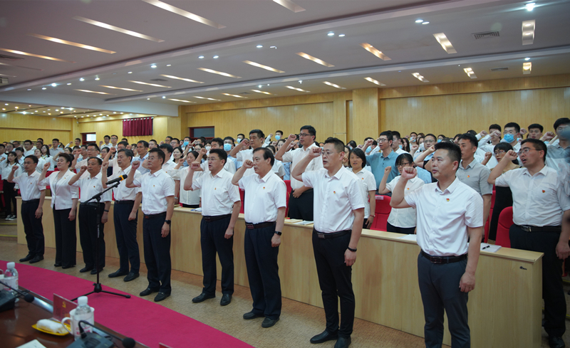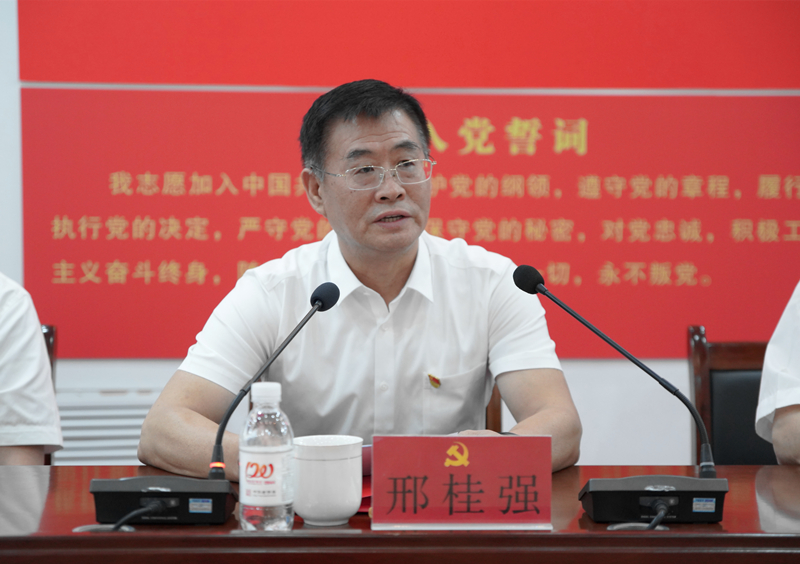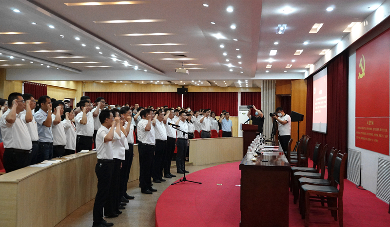 活动现场,鲜红的党旗悬挂在讲台中央,全体党员重温入党誓词,邢桂强书记同志领誓,铿锵有力的宣誓声响彻现场,铮铮誓言表达了党员们不忘入党初心,接受党性洗礼,为党的事业奋斗终身的决心和愿望。