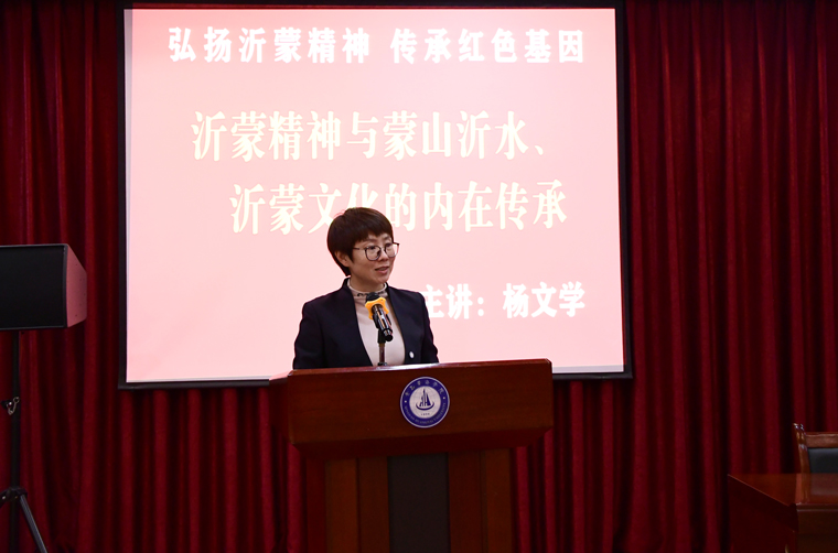 报告会上,杨文学教授从“一片区域”、“两个名词”、“三个标志性符号”三个角度展开,结合一个个鲜活而真实的故事,生动而深刻的为大家讲解了“沂蒙精神”的历史性和当下性。