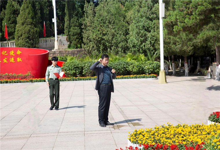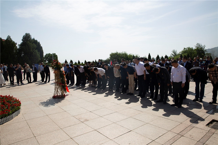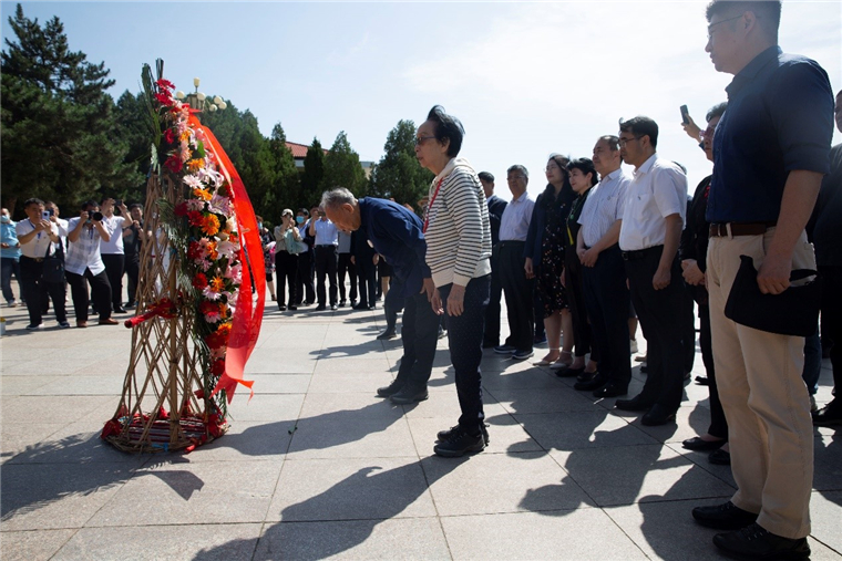 9点30分,李肇星同志携全体人员面向“五大书记”铜像整齐肃立,全体奏唱《中华人民共和国国歌》。伴随着深情的献花曲,礼兵缓步将花篮敬献到五大书记铜像前,李肇星夫妇上前整理敬联。全体同志三鞠躬致敬,表达了对老一辈无产阶级革命家的崇高敬意,深切缅怀革命先辈的丰功伟绩。
