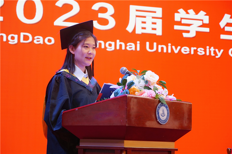 大数据学院李艳楠同学代表毕业生发言,向母校告别、向老师道谢。大学期间,她携笔从戎,参军报国。退伍不褪色,她考取山西省2023年选调生,志愿到基层和艰苦边远地区工作。她表示,在今后的工作中,一定谨记母校的教诲,踏实求索、勤思笃行、知行合一。