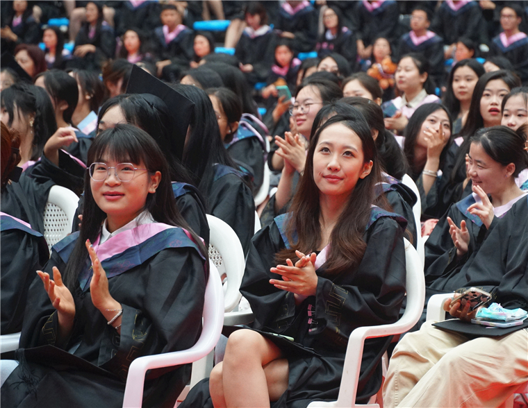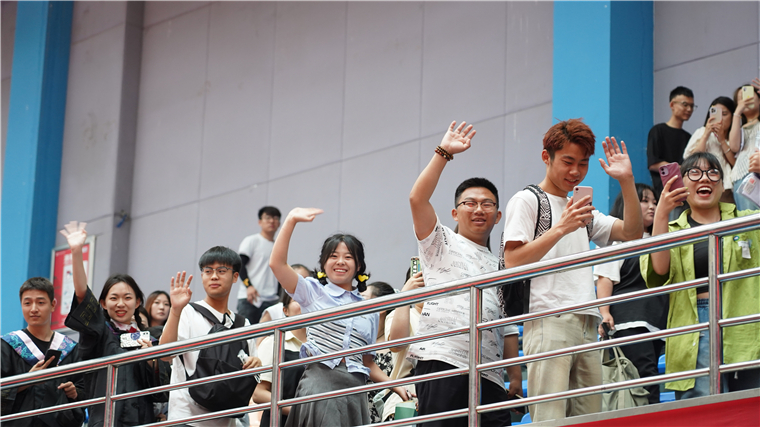 毕业典礼正式开始前,现场播放了2023年毕业季MV《再见那些年》,演唱了《再见》《后来》《凤凰花开的路口》《我爱你中国》等歌曲。“时光的河入海流,终于我们分头走,没有哪个港口是永远的停留......”伴着悠扬的竹笛声,饱含深情的旋律将成为2023届毕业生青春的“独家记忆”。