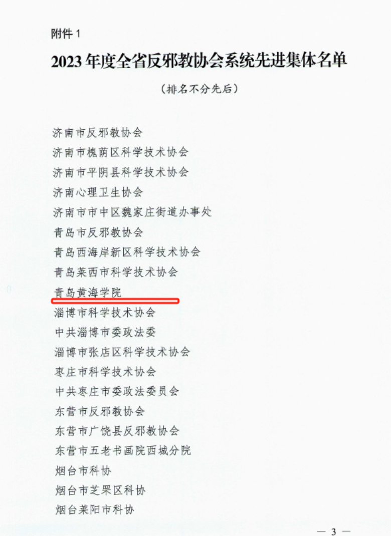 日前,山东省反邪协会发布《关于表彰2023年度全省反邪教协会系统先进集体和先进个人的通报》(鲁反邪教发〔2023〕11号),对全省在反邪教领域作出贡献的单位和个人进行了通报表彰,我校喜获“2023年度全省反邪教协会系统先进集体”荣誉称号,也是此次表彰中唯一获此殊荣的高校。