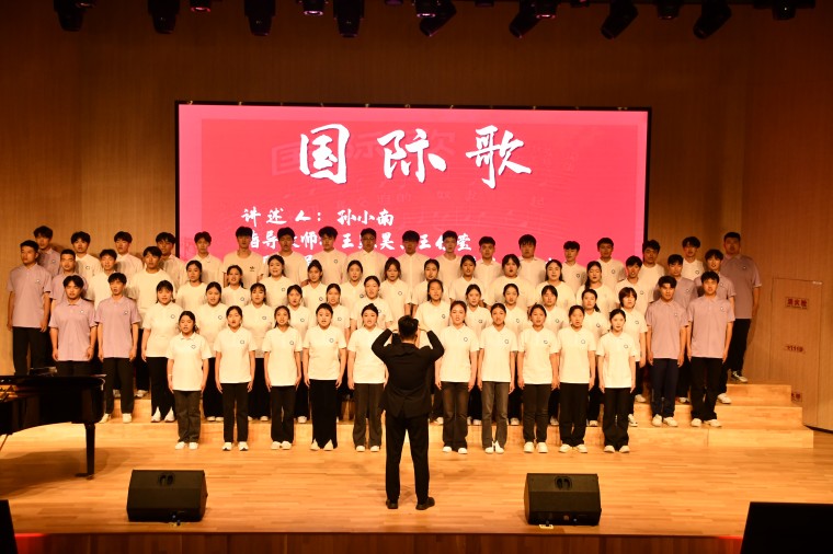 活动伊始,全场观众在《国际歌》激昂的旋律中感受到中国共产党人坚定的信仰和崇高的理想。 随后,同学们演唱了《十送红军》《团结就是力量》《沂蒙山小调》《没有共产党就没有新中国》等经典红色歌曲,让人仿佛看到了那个年代人民对红军的深厚感情和对革命的坚定支持,表达出中国人民在抗日战争中展现出的英勇顽强和团结一心的精神风貌,用深情的歌声歌颂了党领导人民取得的伟大胜利和新中国的美好前景。