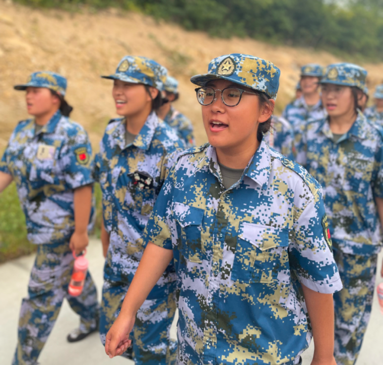 在行军途中,随着海拔逐渐攀升,同学们的热情逐渐高涨,在教官的带领下放声高唱《团结就是力量》等歌曲,嘹亮的军歌在山间回响,浩浩荡荡的拉练队伍在山间小路上秩序前行,尽管山高路远,但全体新生没有一个人掉队。