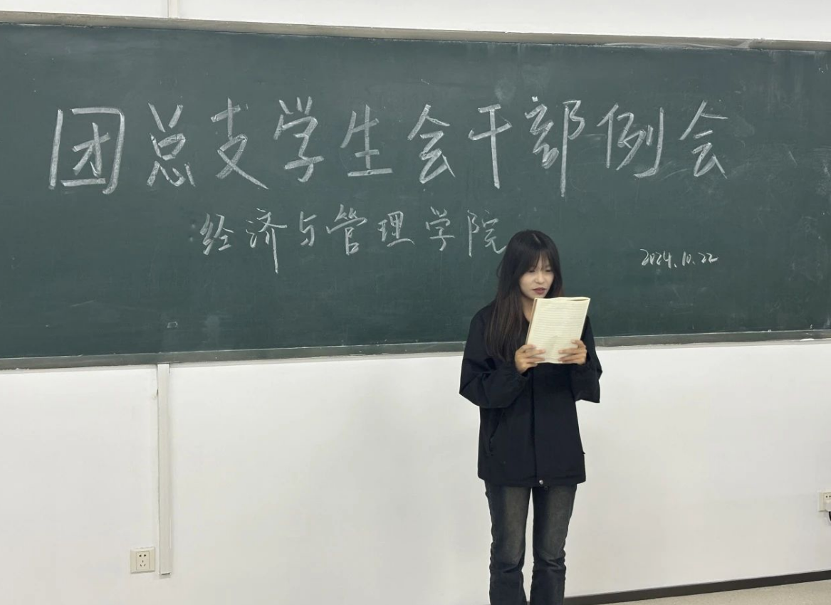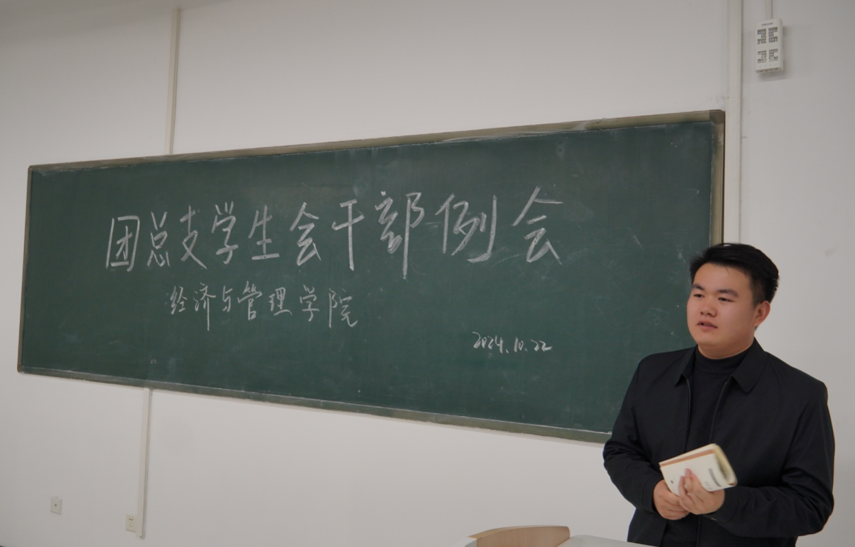 为深化经济与管理学院团总支学生会内部建设,全面提升新一届学生干部的工作能力和责任意识,明确新学期的核心任务和工作导向。经济与管理学院于2024年10月22日18:30,在知行楼402教室召开团总支学生干部例会。此次会议由经济与管理学院团总支副书记黄泰主持,副部长及以上成员参与。