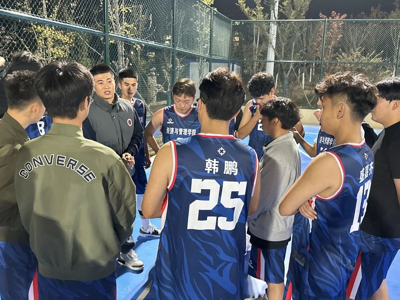 随着比赛的进行,比分交替上升,紧张的气氛弥漫在整个赛场。朱升学老师在中场休息时进行现场指导,告诉经管球员们要不骄不躁,稳扎稳打,充分发挥出自己的实力。他们用汗水和拼搏诠释着体育精神,用行动展现着青春的活力。
