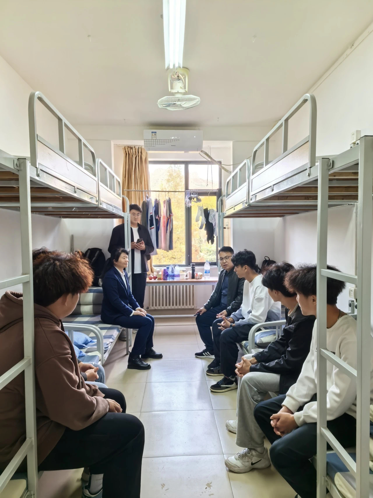2024年11月4日,国际商学院与经济与管理学院常务副院长孙兆忠,带领经济与管理学院院长助理刘政义、院长助理李燕、办公室主任孔祥壮、学工主任武志强、团总支书记仪晓霖,深入学生宿舍进行走访,给同学们带来了关心与问候。此次走访主要围绕学生的学业、生活、饮食习惯三个方面展开。