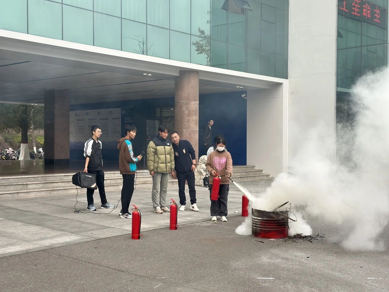全体师生集合完毕后,在安全区域,学院领导和教师们带来了专业的消防知识讲解,生动地向大家介绍火灾的危害、预防火灾的重要性以及在火灾中正确的逃生方法。并对全体师生进行了现场指导,包括正确使用灭火器、疏散逃生等技能。