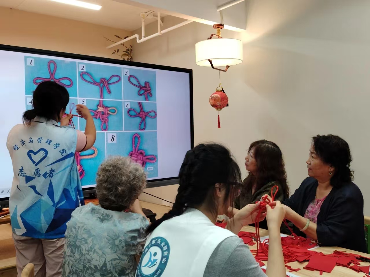 金秋十月,丹桂飘香,我们迎来了伟大祖国的生日——国庆节。在这个充满喜悦与自豪的时刻,一群经济与管理学院“小黄锋”志愿者协会的志愿者们走进星光岛社区,与老人们一起制作中国结,用这一传统的手工艺品,表达对祖国的深深祝福。
