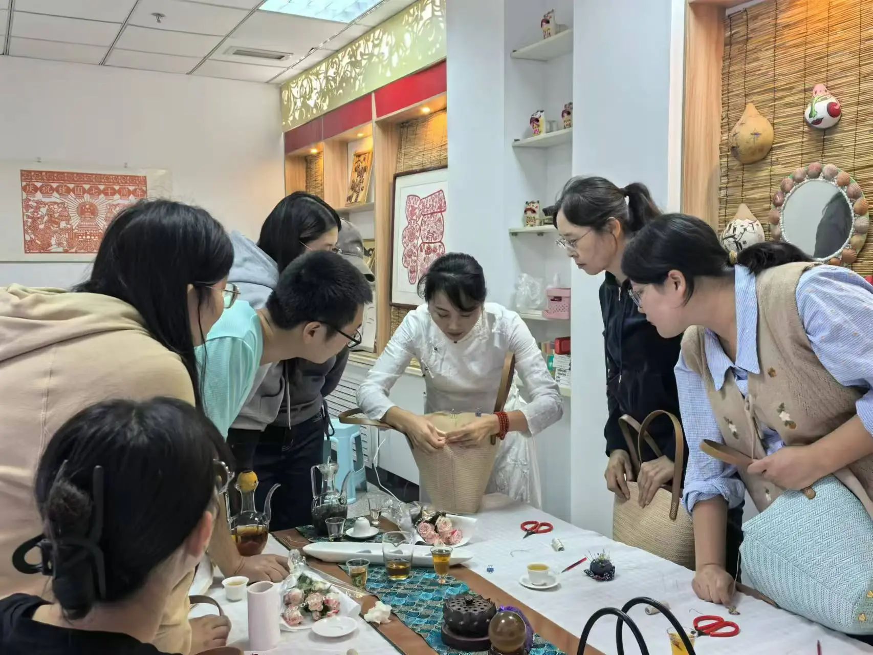 每一个包都是志愿者们精心打磨的作品。他们在设计时与非遗传承大师们深入交流,反复揣摩每一个图案、每一道工序的意义。这不仅是简单的制作,更是文化的传承。这些包袋,带着历史的温度,走进了校园的时尚前沿。