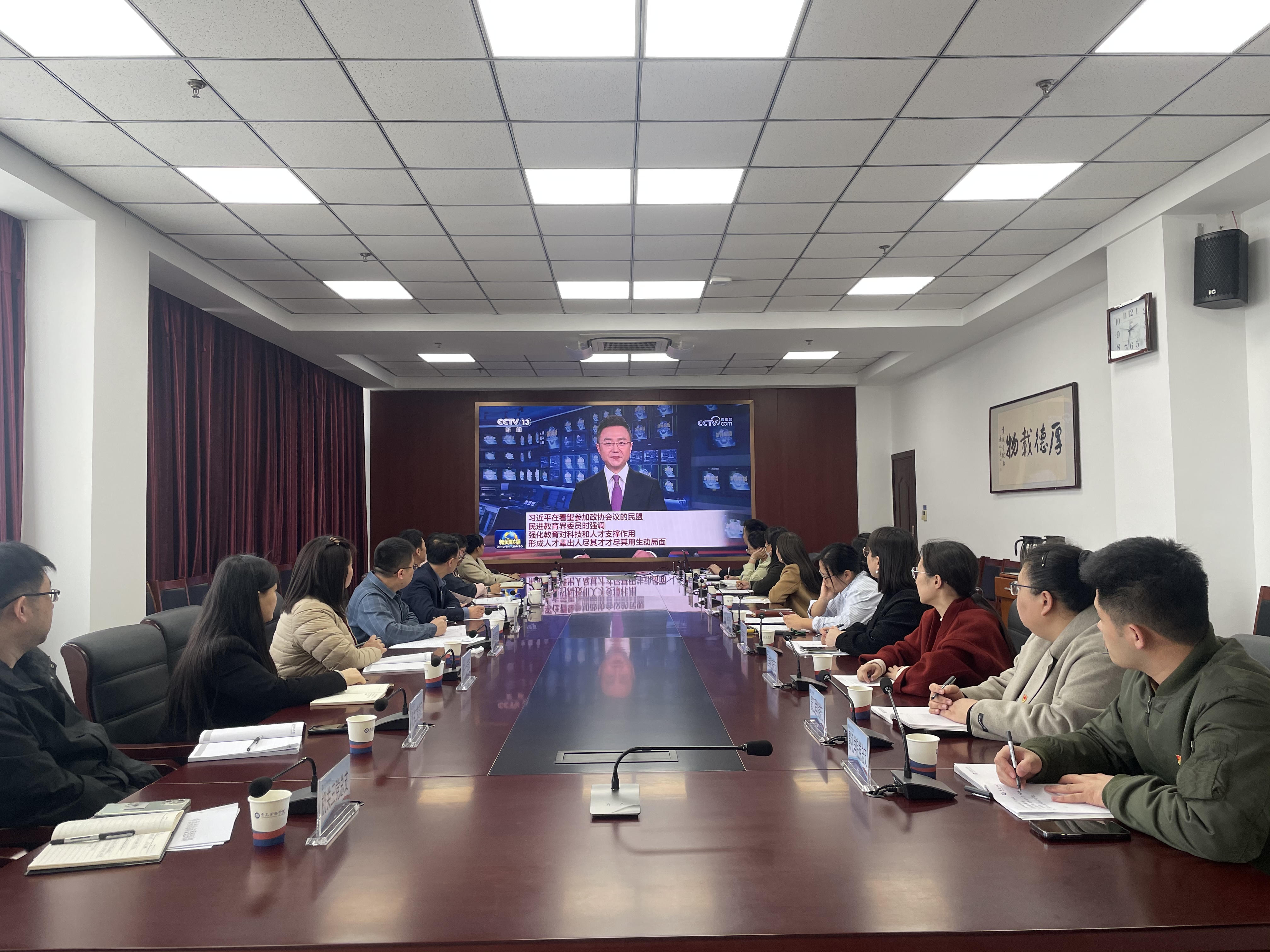 参会人员首先集体观看学习了“习近平在看望参加政协会议的民盟民进教育界委员的讲话精神”。