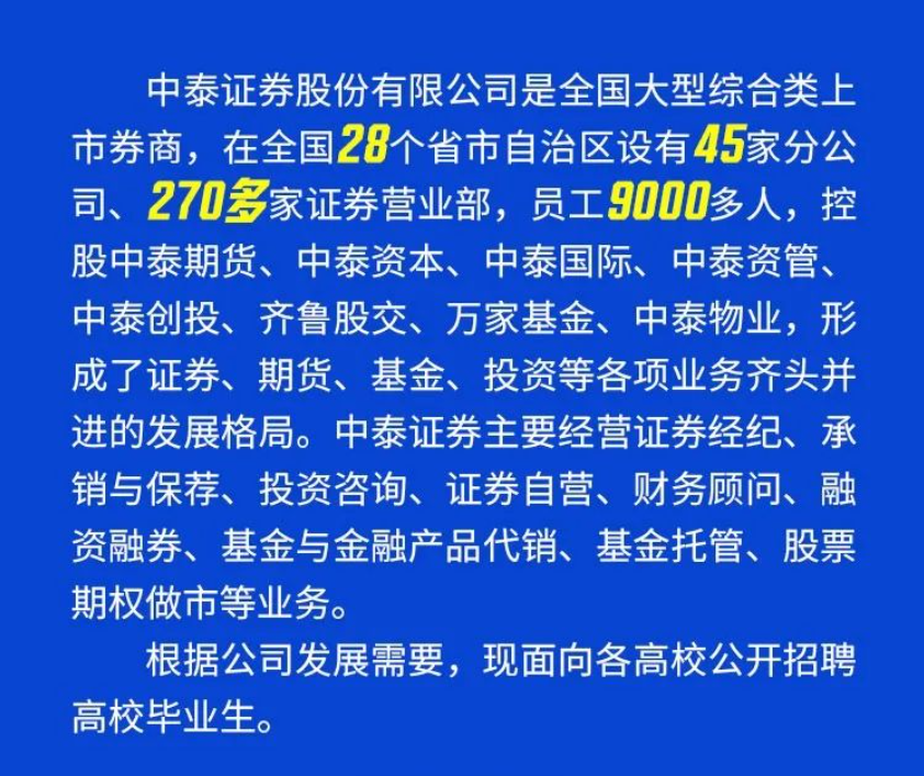 招聘信息 | 中泰证券2025届春季校园招聘启动