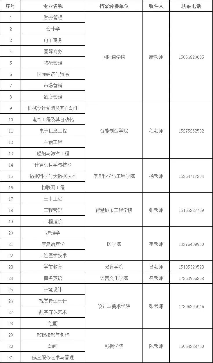 各专业档案转寄地址:青岛西海岸新区灵海路1145号