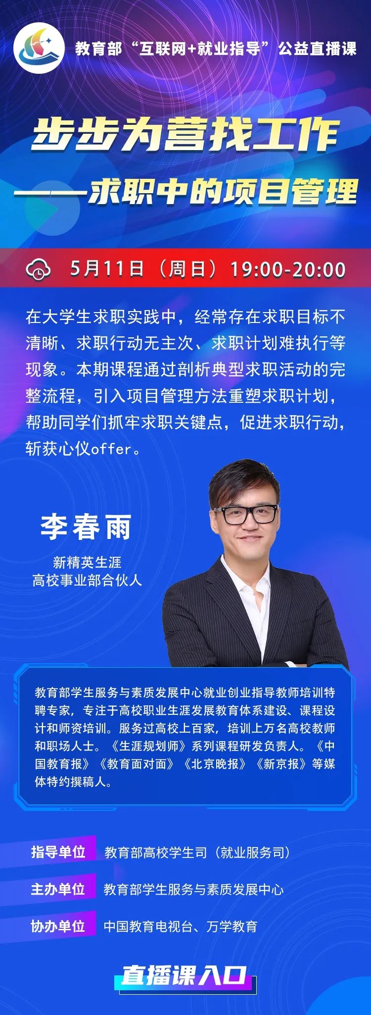 就业指导 | 课程预告 | 教育部“互联网+就业指导”公益直播课:步步为营找工作——求职中的项目管理
