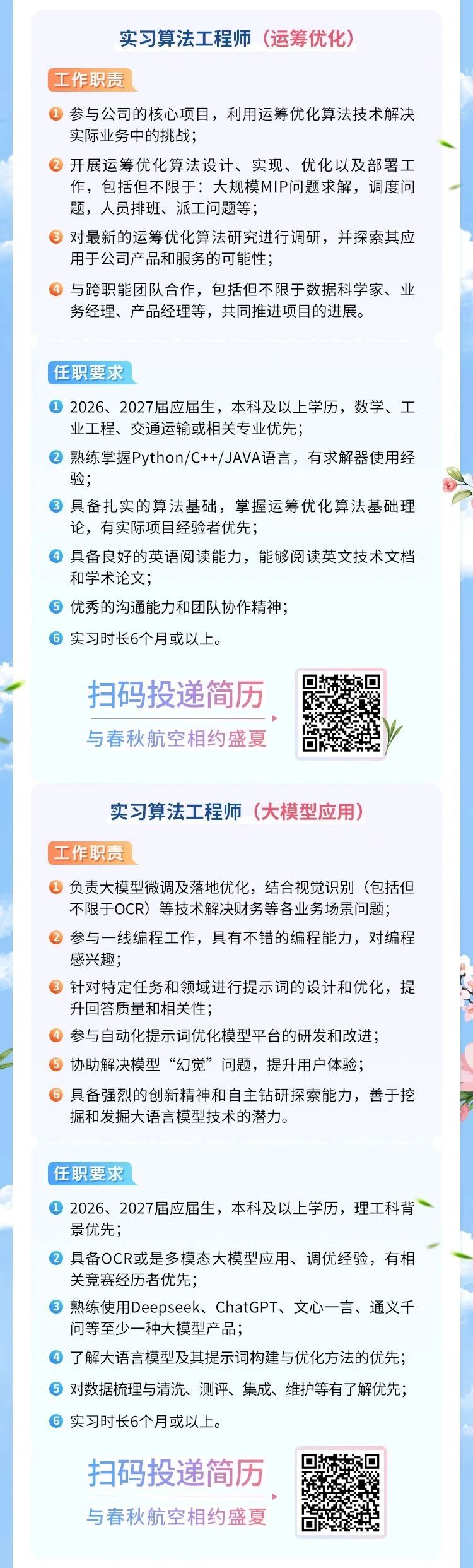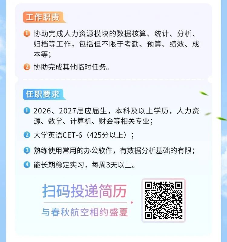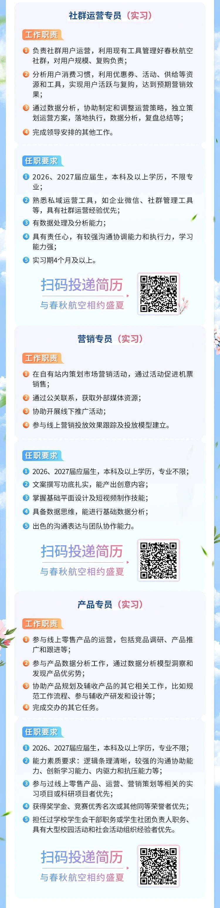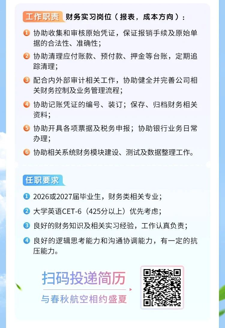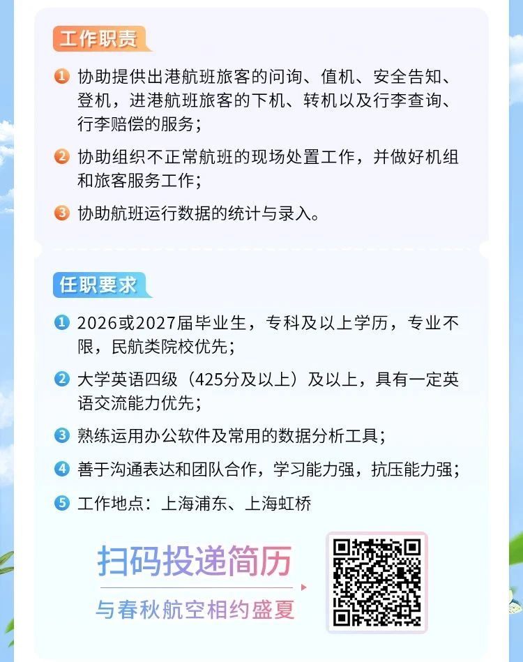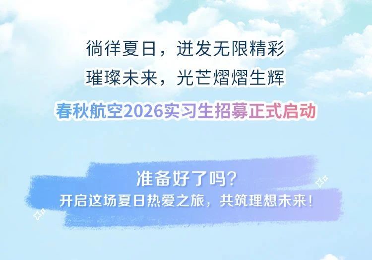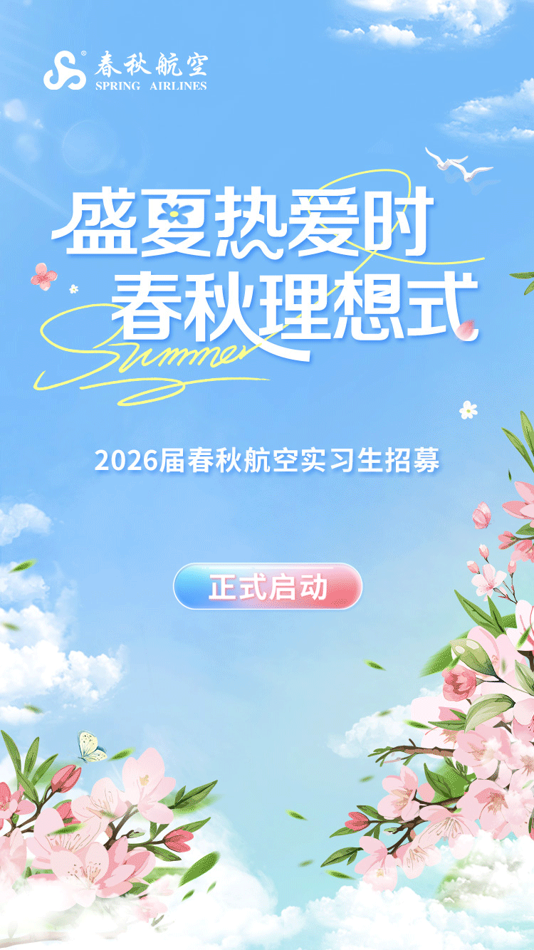 招聘信息 | 春秋航空2026届实习生招募正式启动!