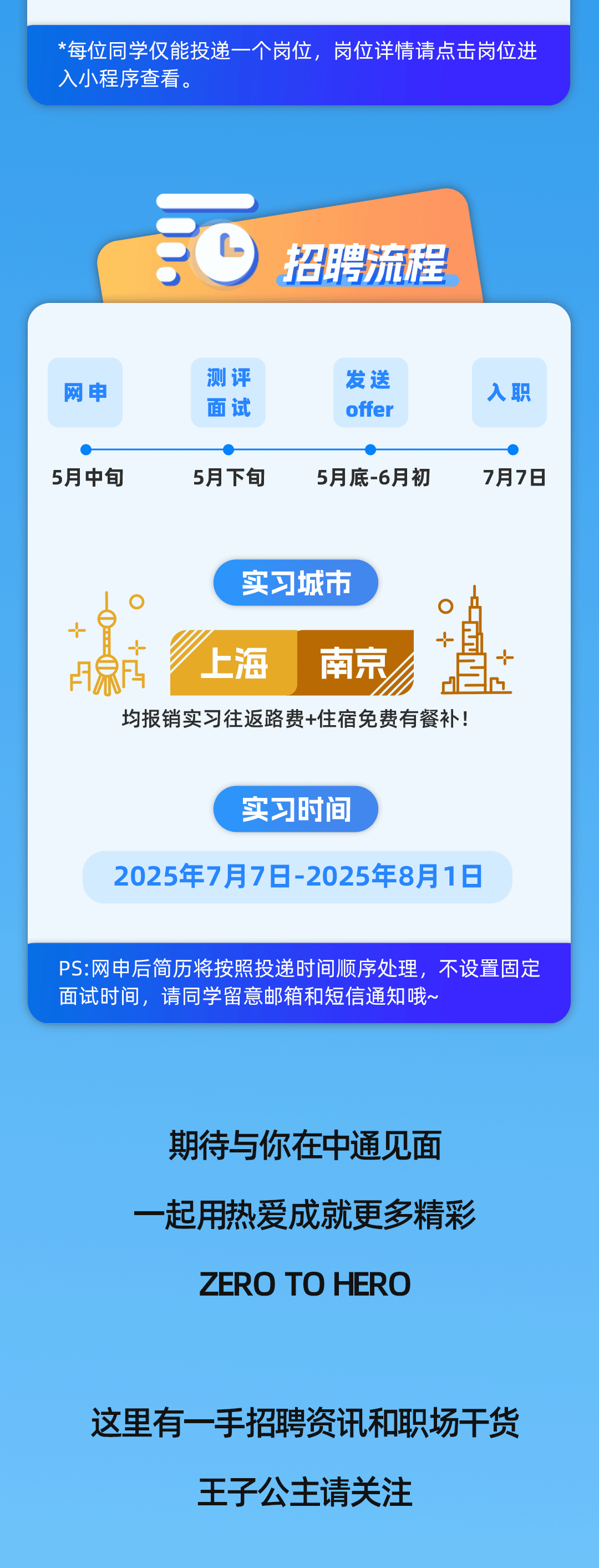 招聘信息 | 中通快递2025年暑期实习生招聘正式启动!