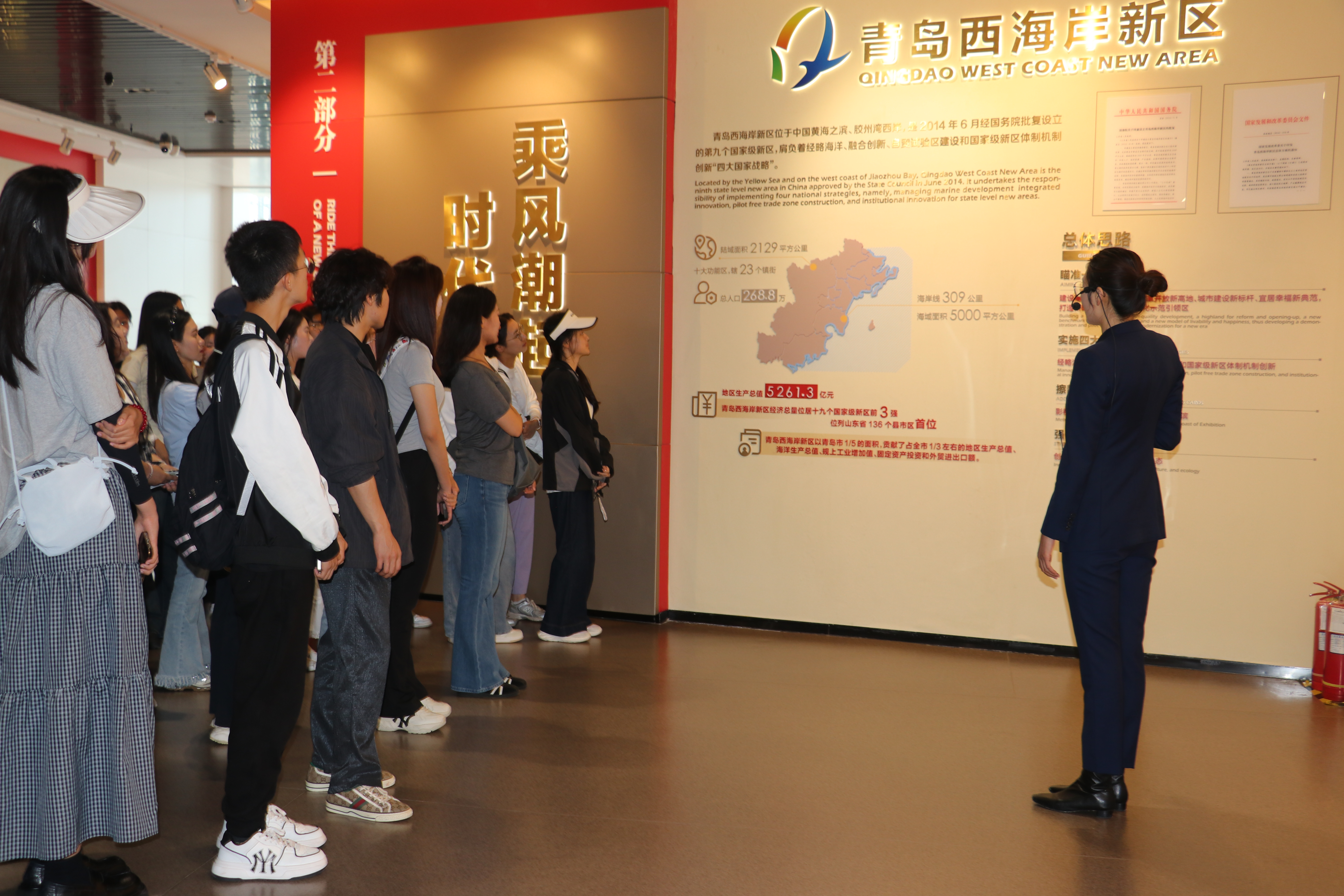 为深化高校学子对青岛西海岸新区的认识,搭建校地交流平台,近日,由青岛西海岸新区人社局组织开展的“‘红帆领航青心向党’高校学子看新区主题党日活动”正式启动。5月30日,青岛黄海学院积极响应,精心组织校内90名学生走进新区,开启了一场沉浸式的参观之旅,全方位领略青岛西海岸新区的现代化发展脉搏与深厚人文底蕴。