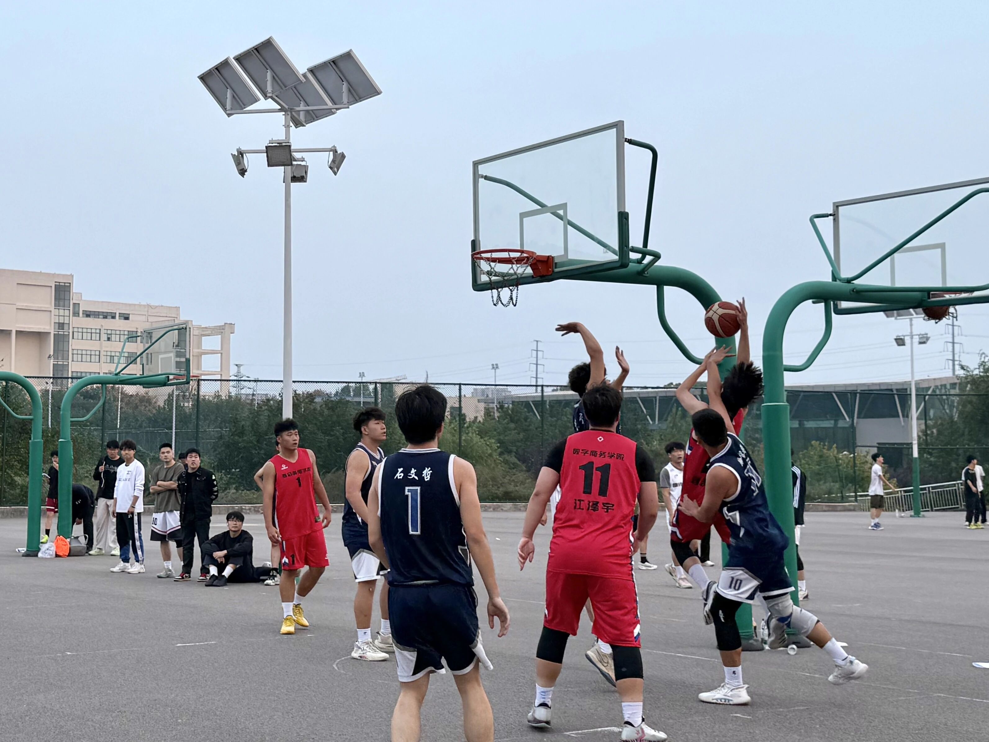10月16日,虎山操场上欢呼声此起彼伏,数字商务学院与医学院的男篮小组赛在此激烈上演。