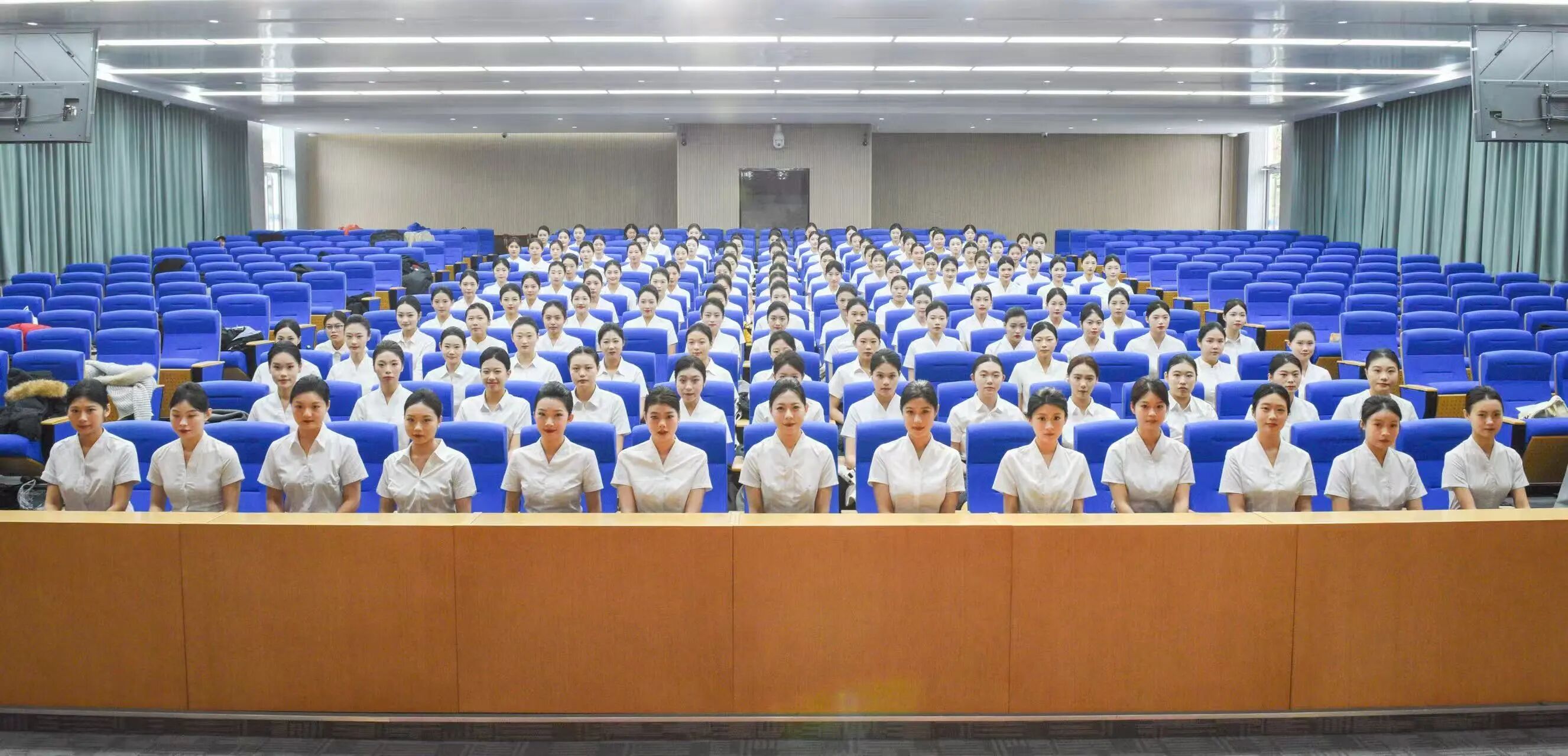 本次招聘面向全日制大专及以上学历的女生,年龄放宽至18-25周岁,要求身高163cm-173cm,普通话标准,英语口语流利者优先。面试现场,同学们身着职业装,仪容整洁、精神饱满,展现出我校学子良好的职业素养与精神风貌。
