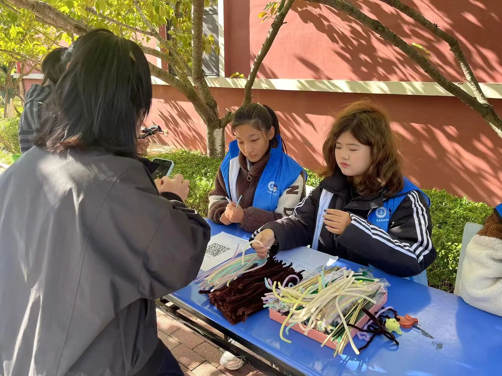 在活动现场,志愿者们化身“手工导师”,全程耐心指导参与者如何将扭扭棒弯出树叶的自然弧度,每一个步骤都细致讲解。大家既可以独自沉浸创作,把对秋日校园的喜爱融入手中的“树叶”;也能与身边同学组队协作,一人负责塑形、一人负责装饰,在分工配合中拉近彼此距离,尤其对新生而言,这不仅是一次手工体验,更是熟悉校园、认识新朋友的温暖契机,让陌生感在指尖互动中悄悄消散。这场活动的意义远不止“做手工”:参与者可将亲手完成的扭扭棒树叶自行带走,夹在课本里当书签或挂在宿舍书桌前当装饰,让秋日记忆以可触摸的方式留存;更重要的是,在共同创作与志愿服务的过程中,“奉献、友爱、互助”的志愿精神也在悄悄传递,志愿者们的耐心指导、参与者间的互帮互助,都为校园里的秋日增添了一份温暖底色。