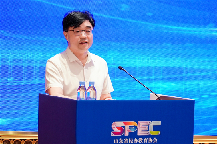 山东省教育厅二级巡视员邓俊庆在开幕式上致辞。他指出,近年来,山东高度重视民办教育发展,持续优化政策环境,支持民办高校发挥机制灵活优势,与企业共建产业学院、实训基地,培养适应区域经济发展的高素质应用型人才。他强调,深化产教融合是推动教育链、人才链与产业链、创新链深度融合的关键举措,也是山东省民办高校实现高质量发展的必由之路。各民办高校要以此次研讨会为契机,积极学习先进经验,主动对接产业需求,不断创新人才培养模式,为山东教育强省建设和经济社会高质量发展贡献民办教育力量。
