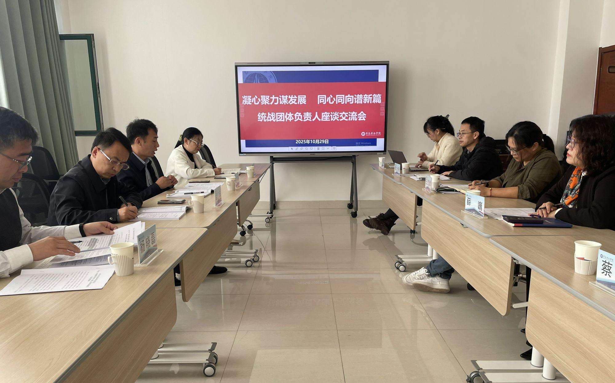 10月29日,青岛黄海学院召开“凝心聚力谋发展 同心同向谱新篇”统战团体负责人座谈交流会。校党委副书记、副校长孟广东出席会议并讲话,党委委员、统战部部长崔明明主持会议。