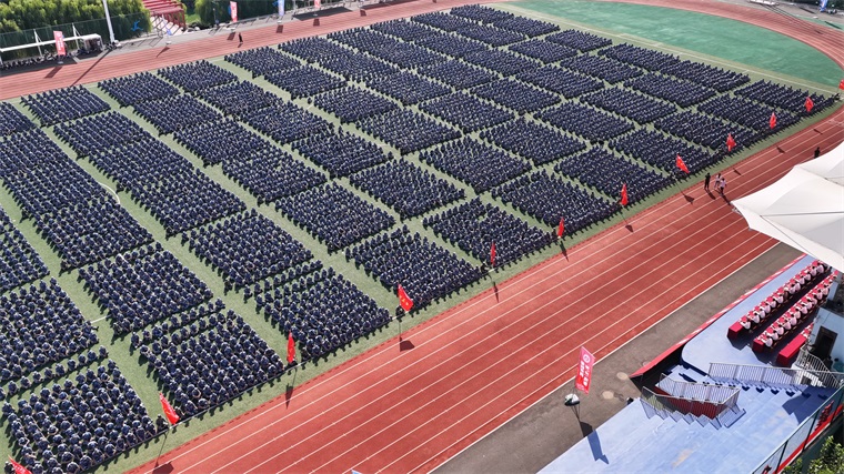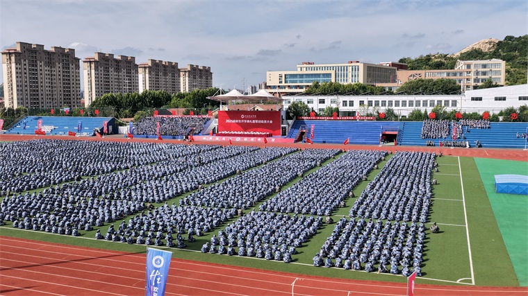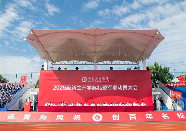9月11日上午,青岛黄海学院2025级新生开学典礼暨军训动员大会在学校体育场隆重举行。学校董事长刘常青、校长李清山、党委书记李东等学校领导班子成员、承训部队首长、各二级学院及有关部门负责人与2025级全体新生一同参加了大会。